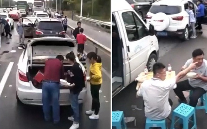 Đoạn clip gây sốt về cảnh kẹt xe tới mức phải ngồi ăn uống chờ thông đường, may mà sự thật khiến ai cũng thở phào