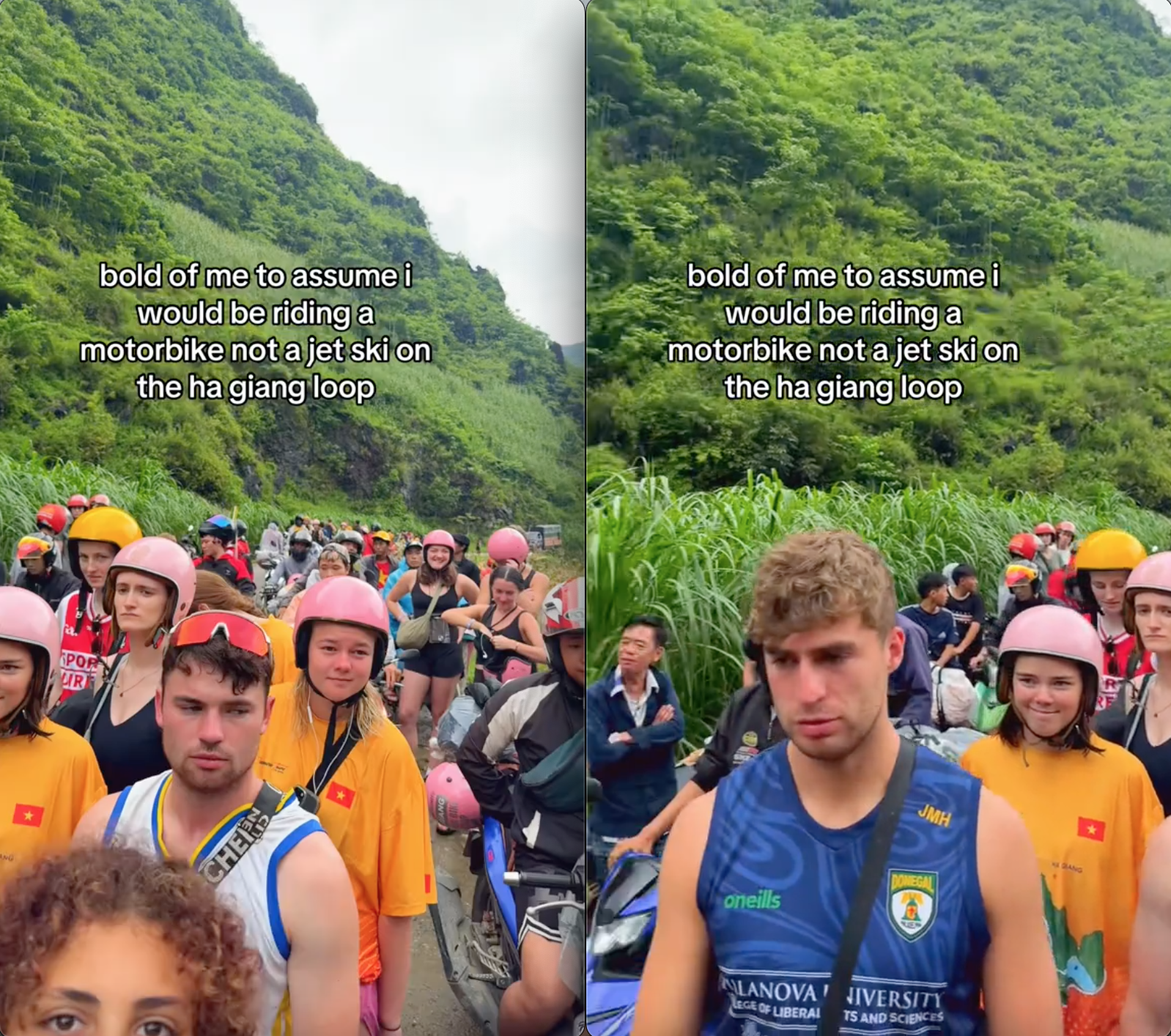 Thế nhưng mới đây, một video ghi lại khoảnh khắc khá trớ trêu trong hành trình này đã thu hút sự chú ý của cộng đồng mạng. Cụ thể, một đoàn khách Tây khá đông trong lúc di chuyển đã gặp phải một khu vực bị ngập nước, có lẽ do ảnh hưởng của mưa lớn những ngày trước đó. Cả đoàn khách Tây rất đông bỗng dưng bị kẹt lại...