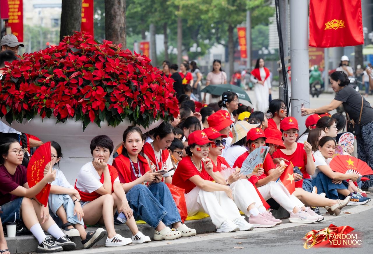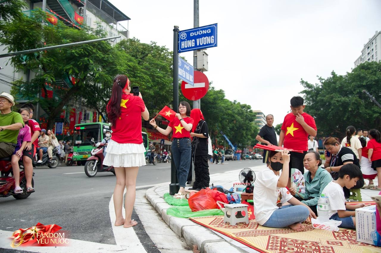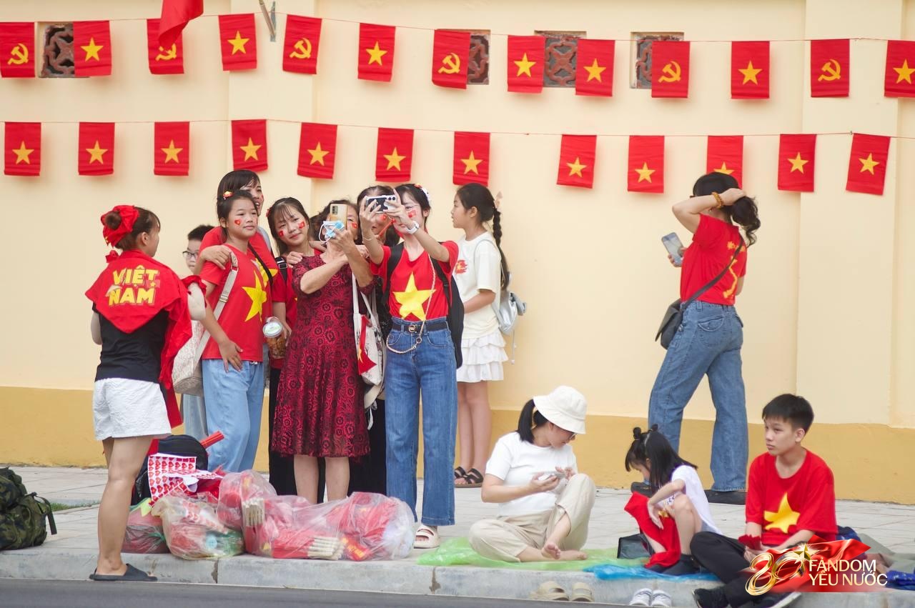 Ngay từ sáng sớm cùng ngày, nhiều người dân đã có mặt, xếp hàng để chọn chỗ ngồi thuận lợi. Trời Hà Nội dịu mát, thời tiết dễ chịu khiến bầu không khí càng thêm sôi động. Dọc hai bên đường, cờ đỏ sao vàng tung bay, tiếng trò chuyện rộn ràng xen lẫn sự háo hức chờ đợi.