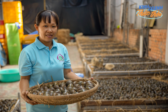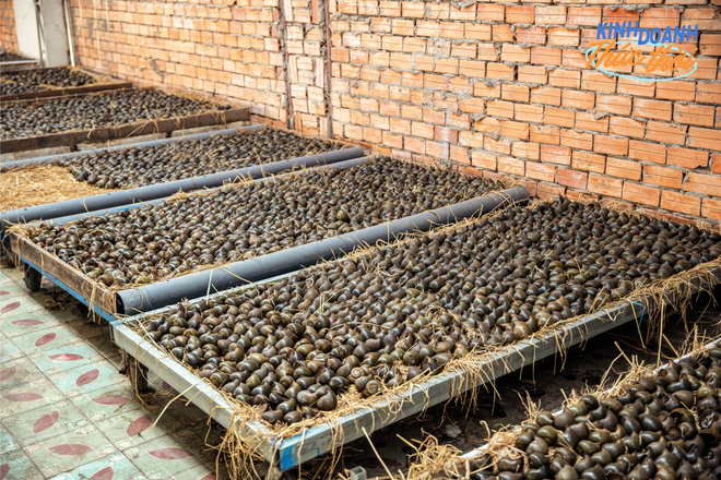 "Cơ sở Tình Quê của mình đi theo hướng phân phối sỉ cho cửa hàng kinh doanh online trên mạng xã hội, các sàn thương mại điện tử. Hiện tại mình có hơn 50 đơn vị hợp tác nhận phân phối với giá sỉ từ 160.000đ - 200.000đ/kg tuỳ số lượng, giá bán lẻ ngoài thị trường đang là 250.000/kg. Mỗi tháng xuất ra thị trường từ 3-5 tấn thành phẩm ốc gác bếp."