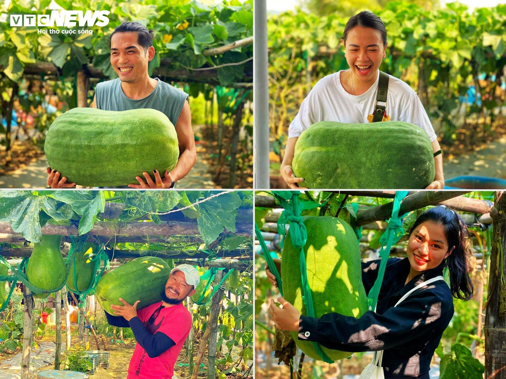 Du khách thích thú chụp ảnh, đăng mạng xã hội khoe cảnh ôm quả bí to như cái lu.