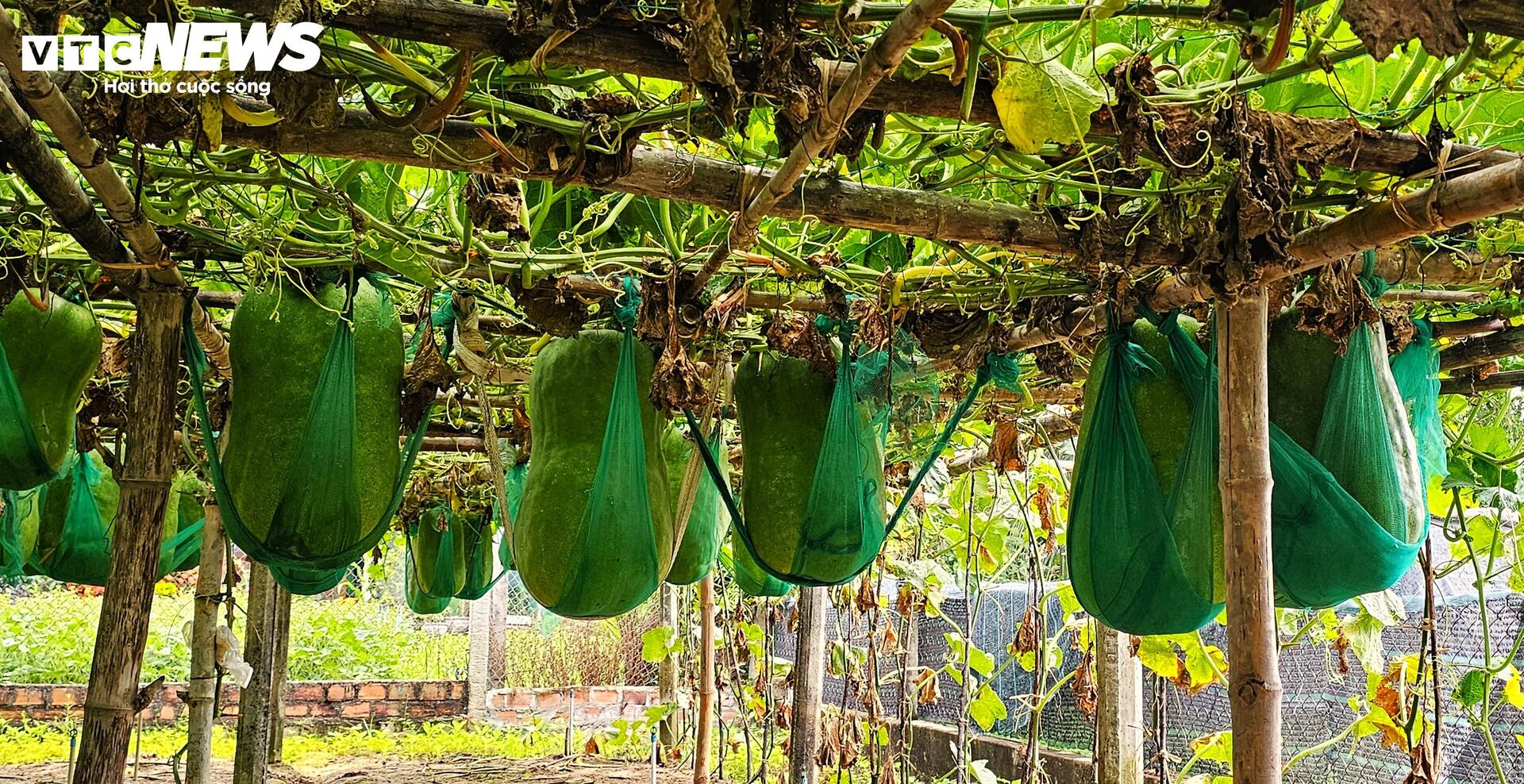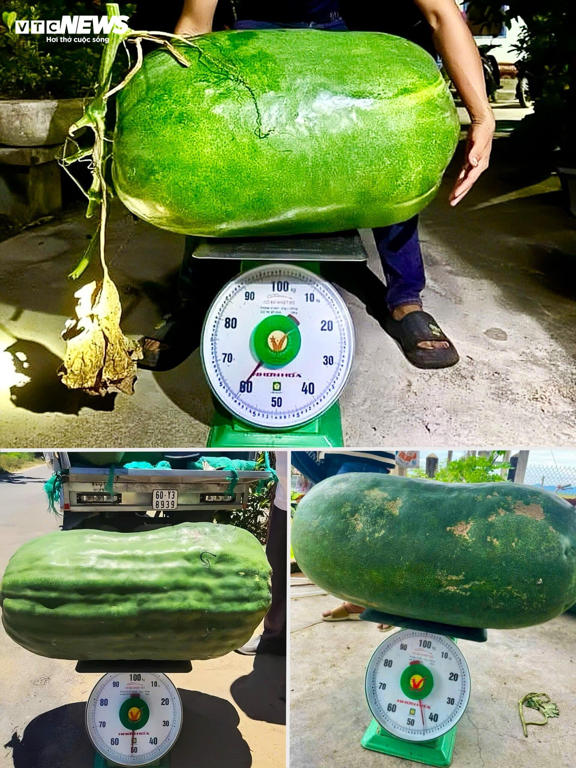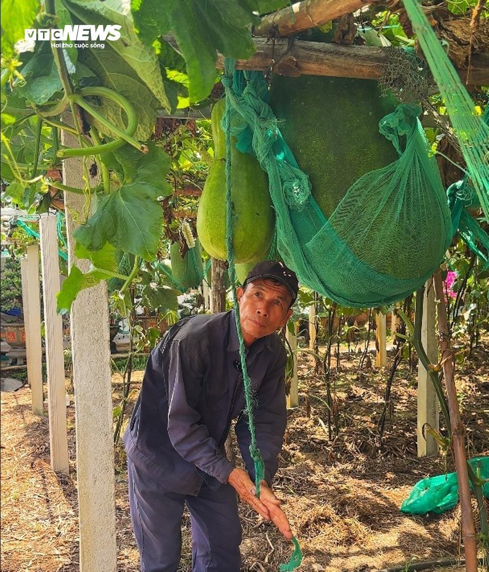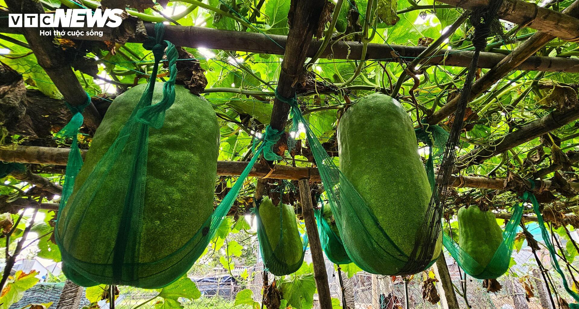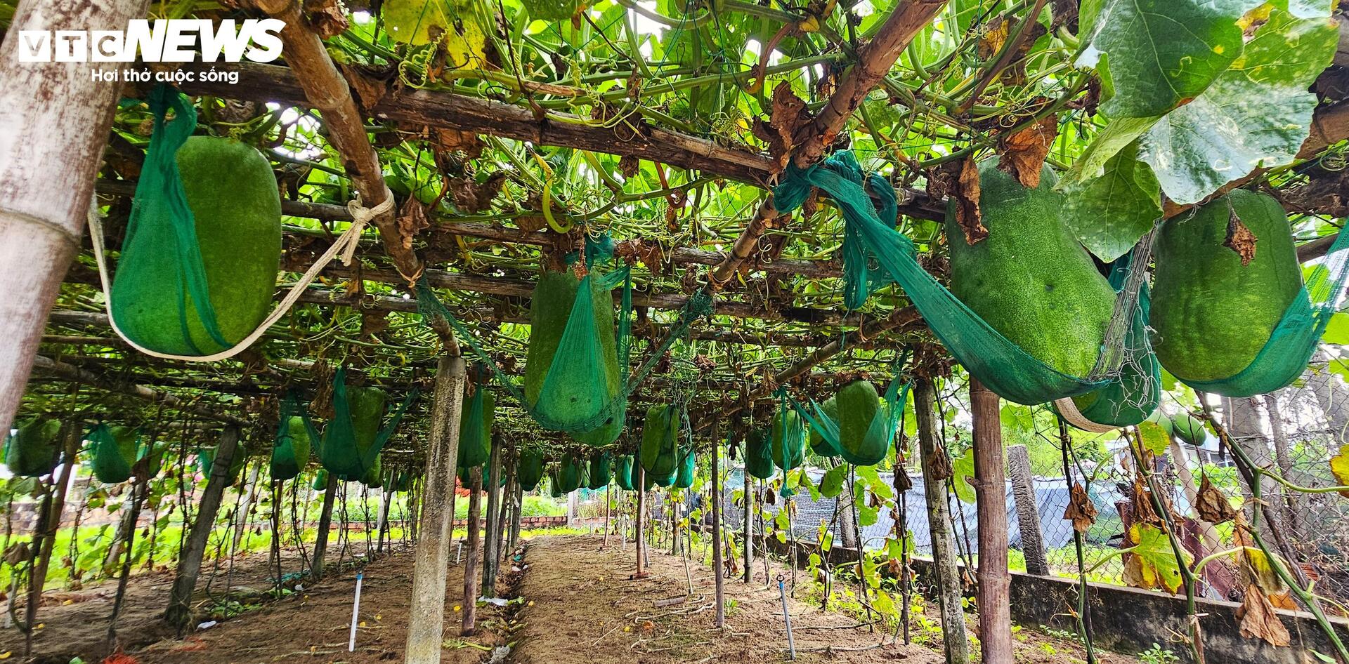 Đến độ thu hoạch, mỗi trái bí đao khổng lồ nặng 30 - 40kg, nếu thêm thời gian nuôi dưỡng trái bí nặng trên 60kg là chuyện thường tình. Vì cân nặng "khủng" của trái bí, người dân làng Chánh Trạch phải làm trụ bê tông và giá đỡ riêng, buộc dây chắc chắn vào giàn vì sợ cuống không chịu nổi sức nặng.