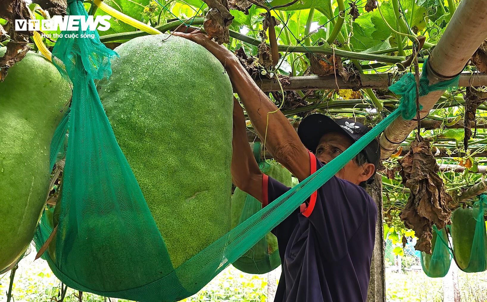 Theo ông Ba Biên (61 tuổi), muốn trái bí đao đạt kích thước và cân nặng cực đại thì mỗi dây bí người dân chỉ để lại một trái, để dưỡng chất tập trung nuôi quả phát triển. Đồng thời phải trồng luân phiên để thổ nhưỡng không cằn cỗi.