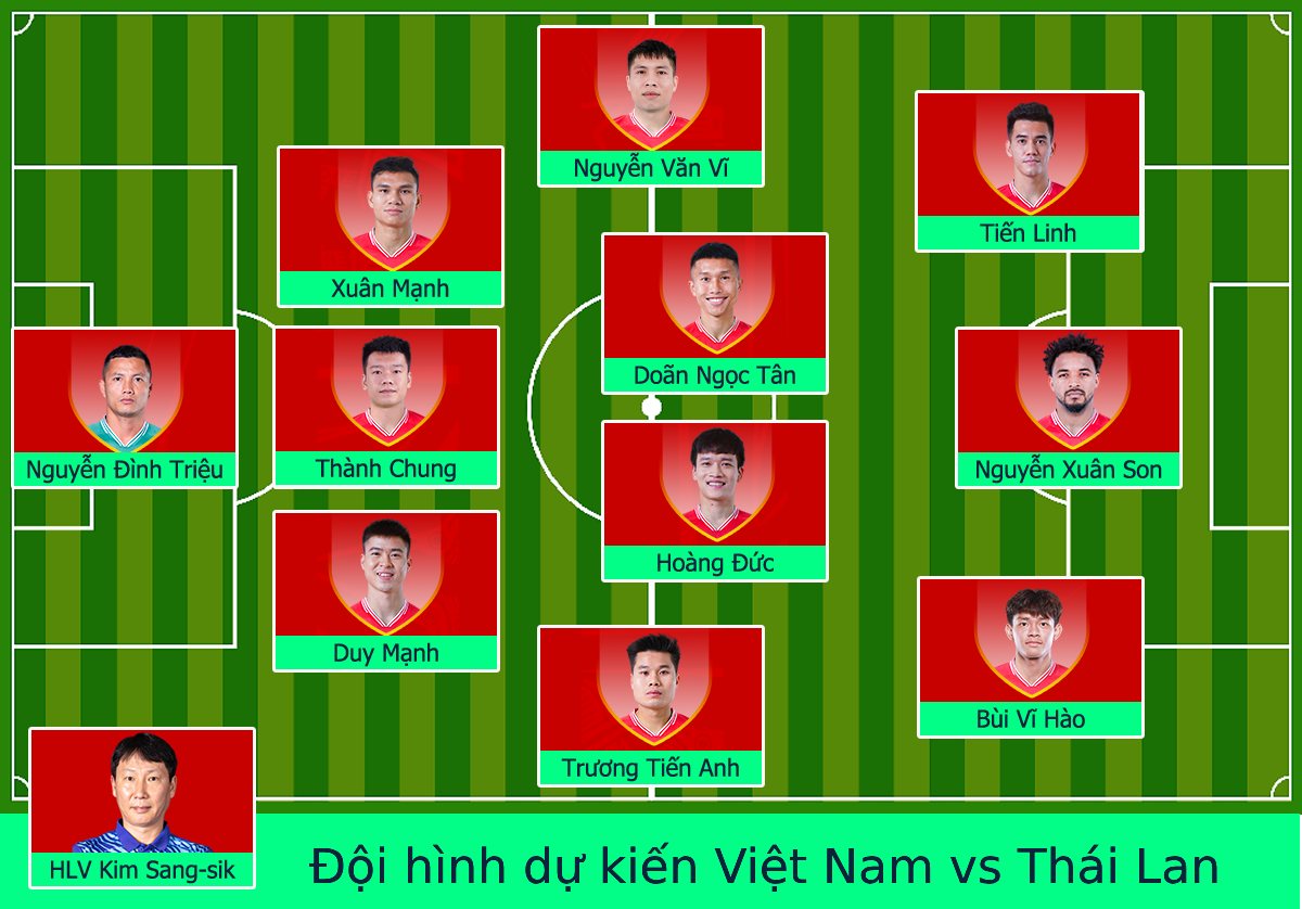Khi Tiến Linh và Nguyễn Xuân Son cùng góp mặt trên sân, đội tuyển Việt Nam cần thêm một nhân tố bổ sung khả năng pressing tầm cao. Bùi Vĩ Hào có thể được lựa chọn nhờ tốc độ và nguồn năng lượng dồi dào. Mặc dù vẫn còn một số pha xử lý thiếu chính xác, Vĩ Hào sẽ buộc hàng thủ Thái Lan luôn phải đề phòng các tình huống lên bóng nhanh.
