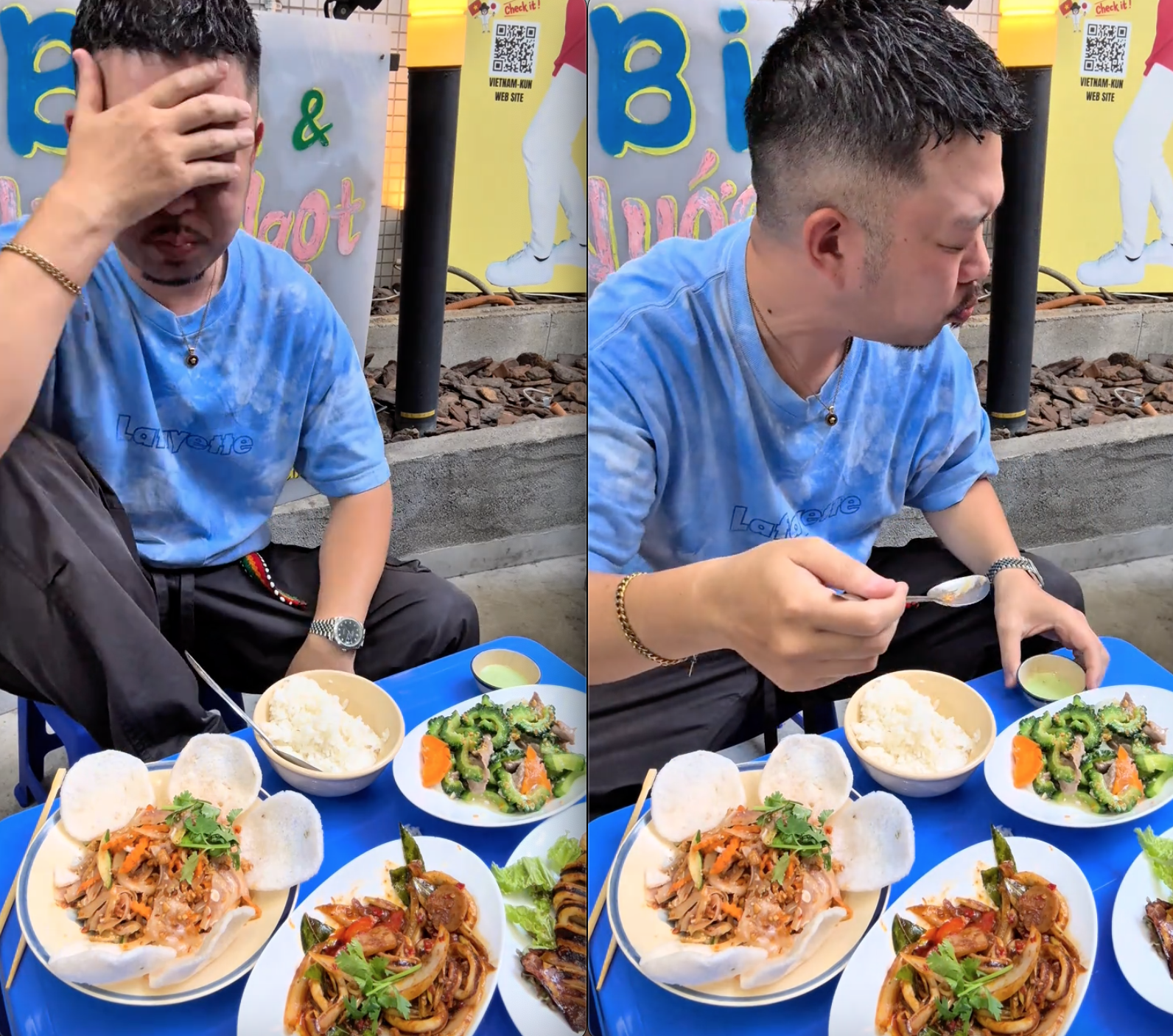 Thế nhưng điểm gây chú ý lại là biểu cảm của vị khách này: nhăn mặt, ôm đầu, nhắm mắt lại như đang chịu đựng một cơn đau đầu dữ dội. Nhưng không - đó là cảm xúc thật sự khi... quá ngon. Anh viết dòng chú thích khiến ai xem cũng bật cười: "Cảnh báo: Video này chứa lượng ngon vượt mức cho phép".