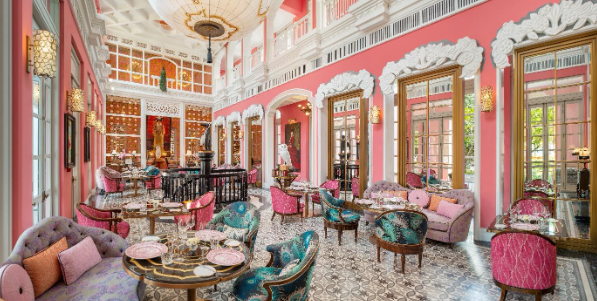 Nhà hàng fine dining Pink Pearl - biểu tượng khu nghỉ dưỡng, đặt trong dinh thự màu hồng mang phong cách Pháp cổ điển.