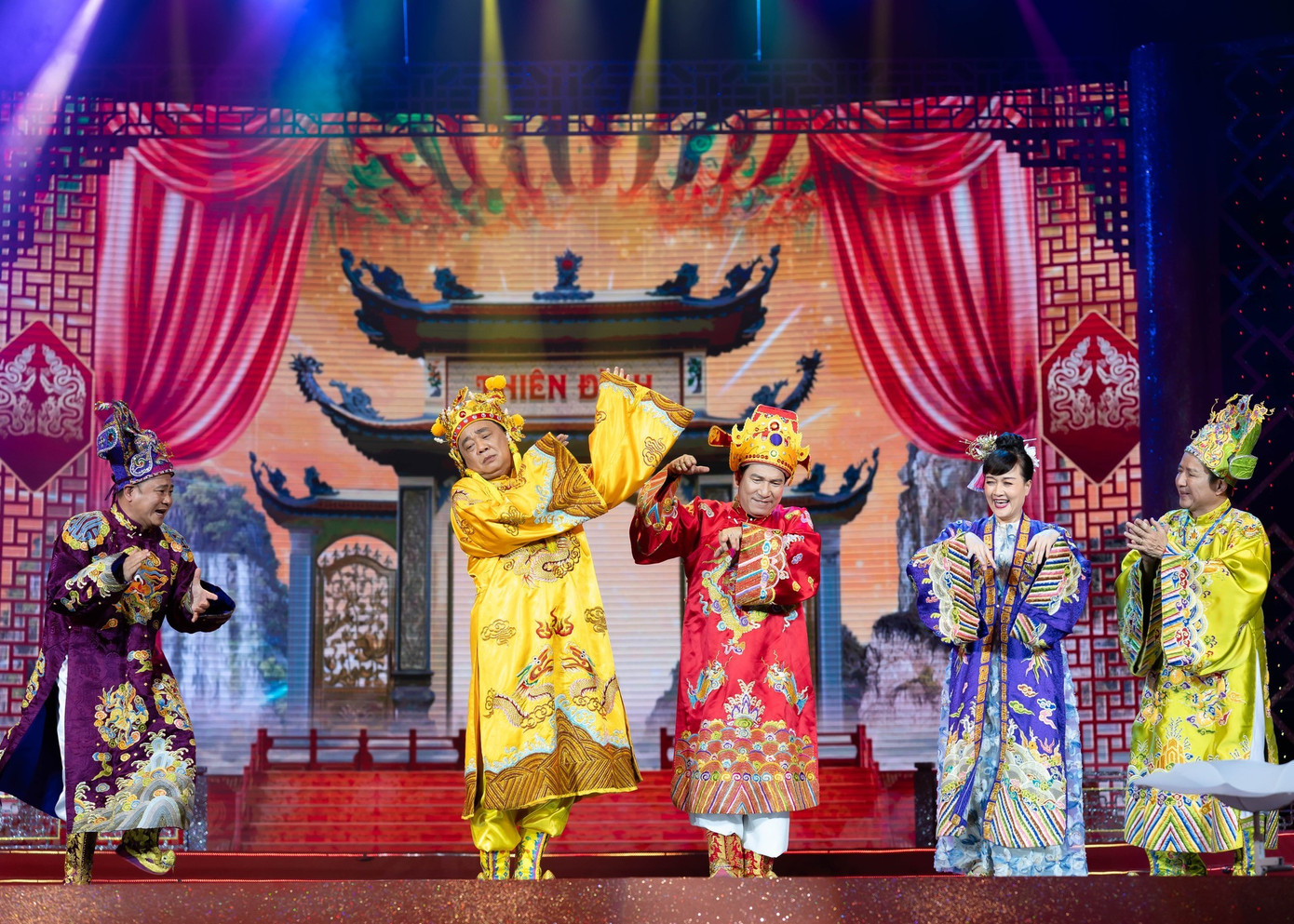 Nghệ sĩ Quốc Khánh, Chí Trung, Tự Long, Công Lý, Vân Dung gắn bó với Táo Quân từ những mùa đầu.