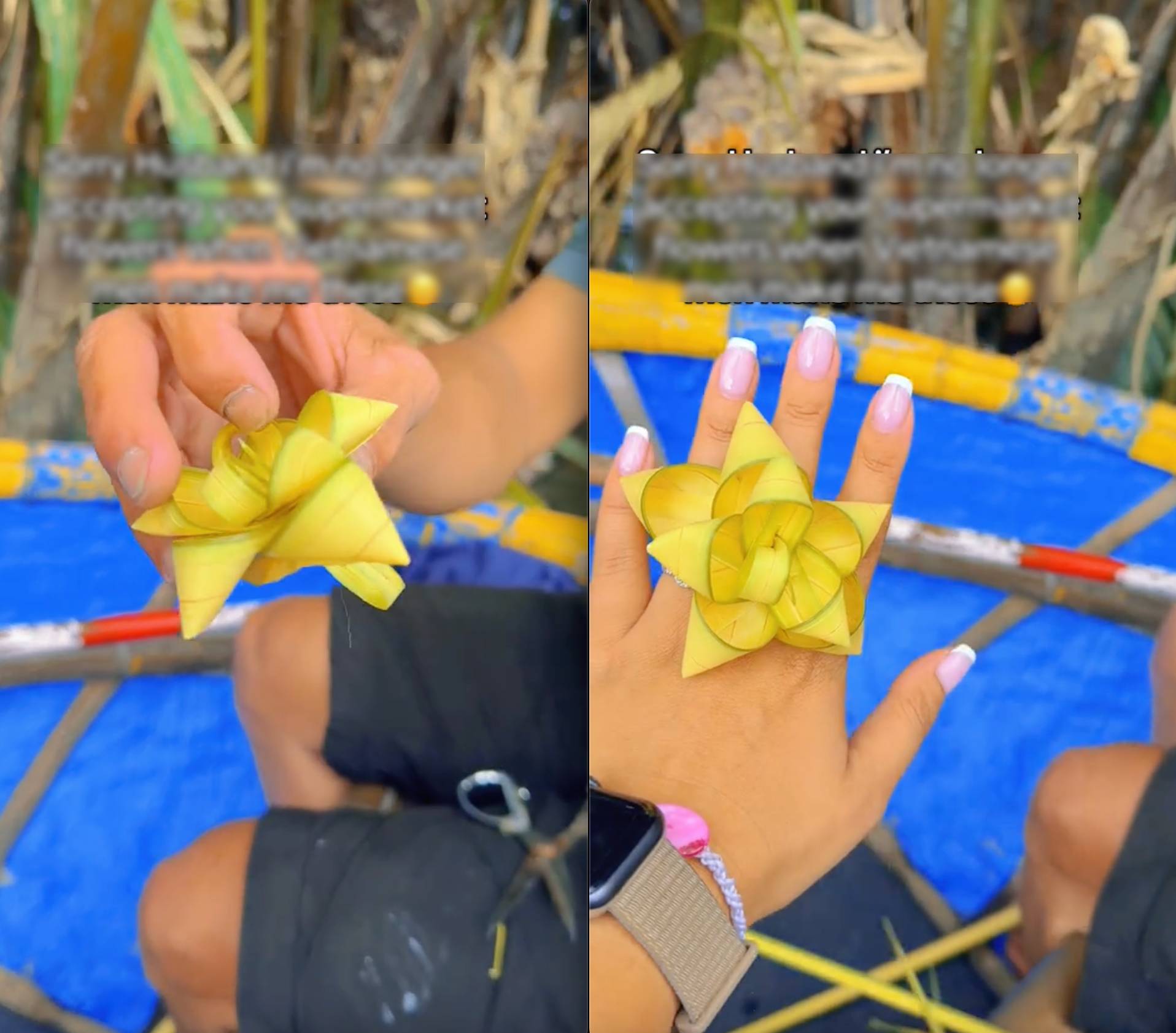 Sau đó, cô cũng giải thích thêm: "Đùa vậy thôi, chứ phải nói là quá sáng tạo và dễ thương luôn, tất cả đều được làm từ lá dừa."