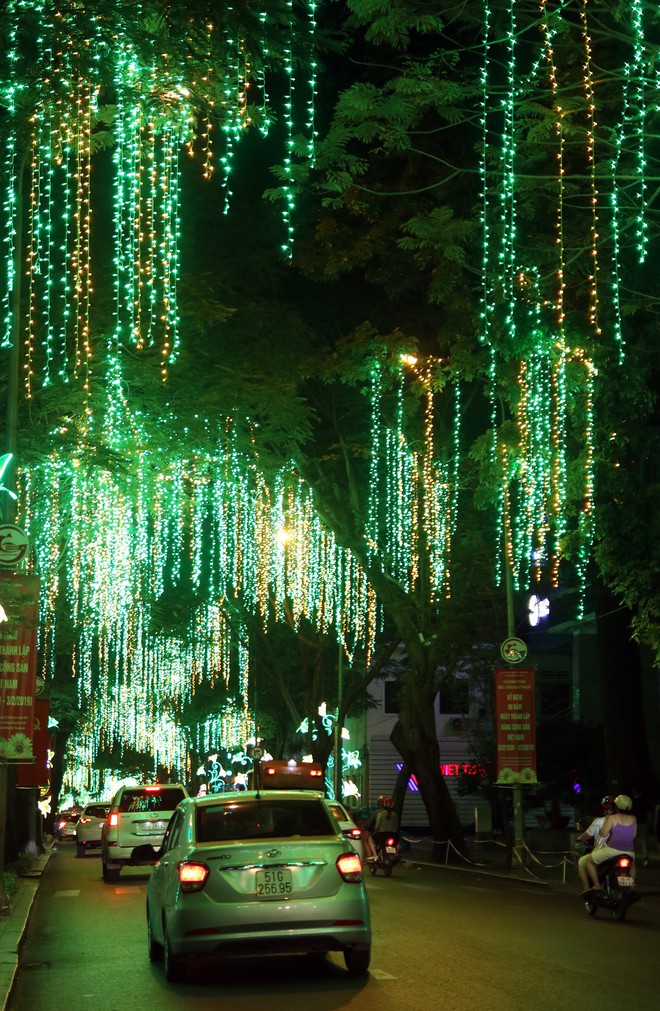 Các tuyến đường như Lê Duẩn, Nam Kỳ Khởi Nghĩa, Nguyễn Huệ,... (quận 1) được trang trang trí các tiểu cảnh, bông hoa,.. toả sáng rực rỡ qua ánh đèn led nhiều màu.