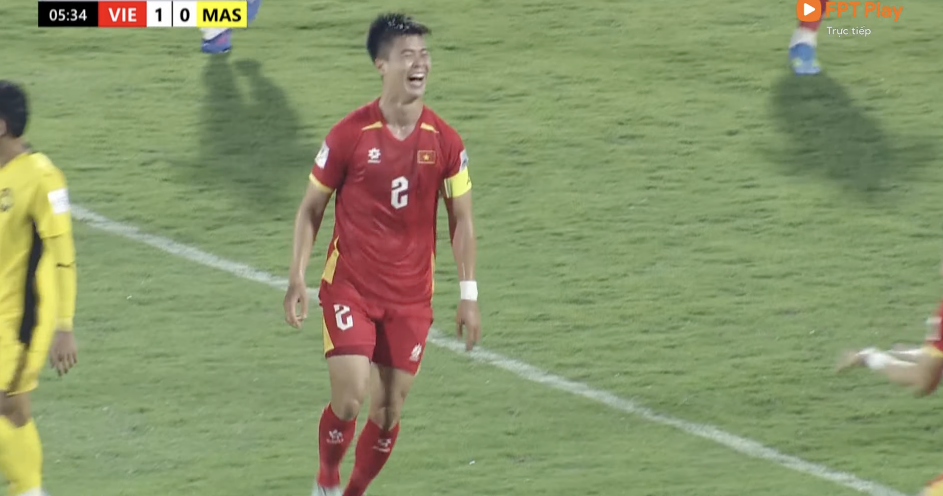Duy mạnh chạy ăn mừng cực vui khi ghi bàn mở tỉ số cho ĐT Việt Nam vào lưới ĐT Malaysia