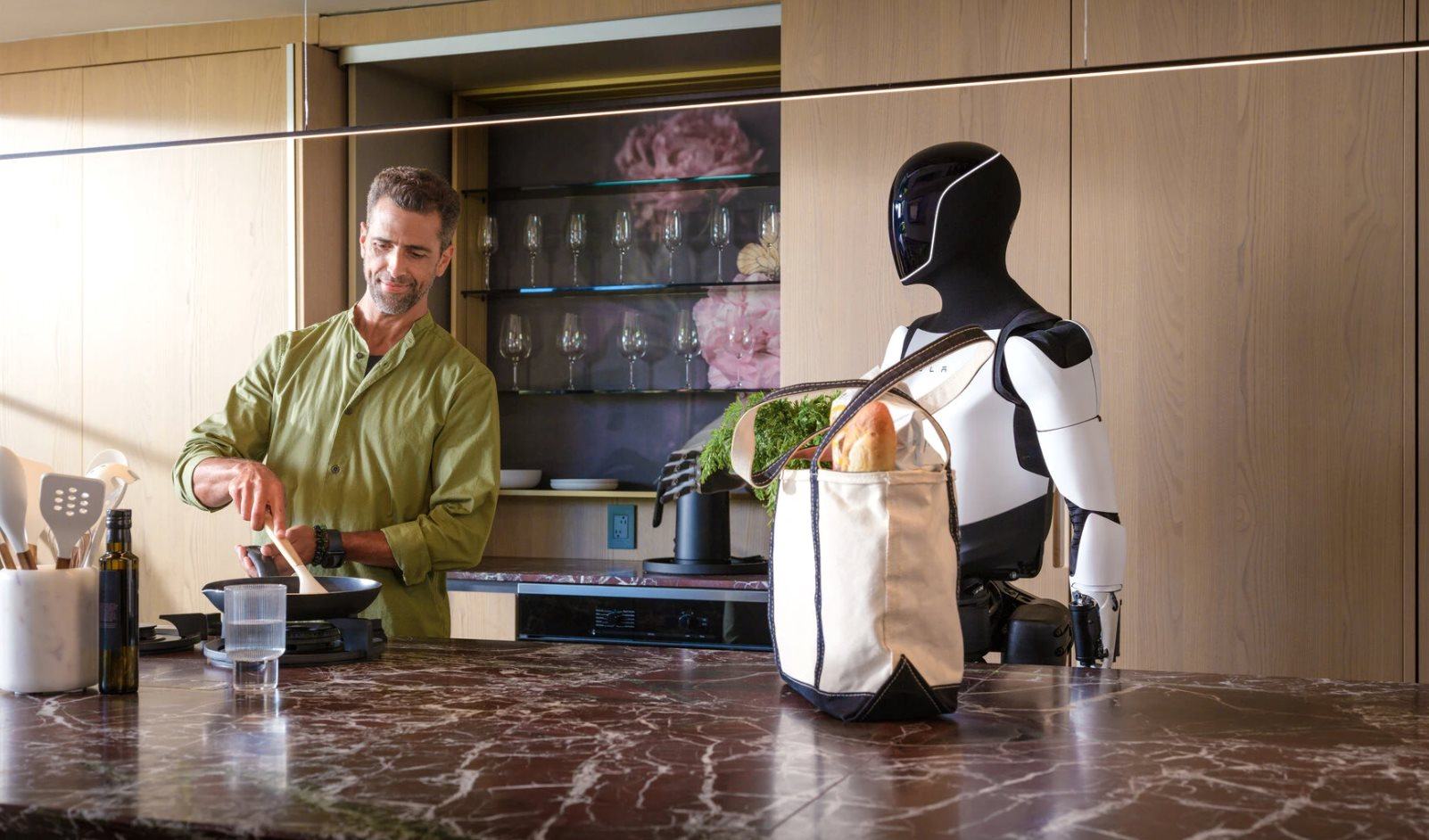 “Tạo ra sự dồi dào bền vững nhờ AI và robot,” Musk nói tại đại hội cổ đông Tesla hồi tháng 11, phía sau ông là tấm biển lớn in chính cụm từ đó. “Đó là tương lai mà chúng ta đang hướng tới.”