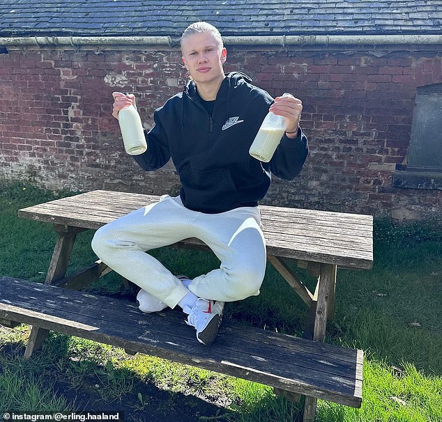 Haaland uống sữa tươi