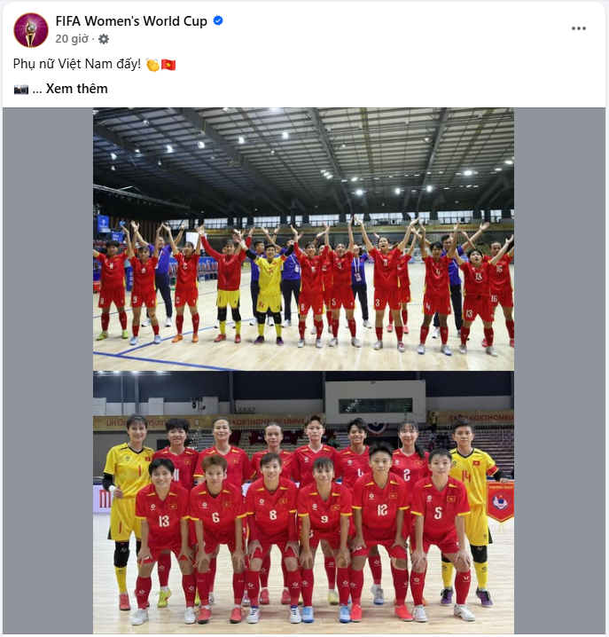 Liên đoàn Bóng đá thế giới (FIFA) mới đây đã dành những lời ca ngợi đặc biệt cho bóng đá nữ Việt Nam, sau khi đăng tải trên trang facebook chính thức hình ảnh và thông điệp tôn vinh Trần Thị Thùy Trang – chủ nhân danh hiệu Quả bóng Vàng 2024 của Việt Nam, HLV Mai Đức Chung - HLV trưởng tuyển nữ Việt Nam và đội futsal nữ Việt Nam.