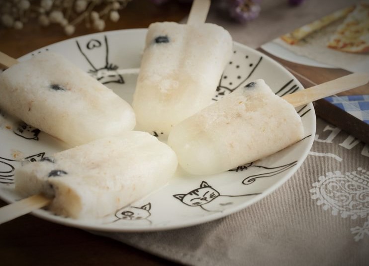 - Cách làm: Vải bóc bỏ tách lấy phần cùi rồi cho vào máy say sinh tố xay nhuyễn. Chanh vắt một ít nước cốt cho vào trộn đều. Rót vải thiều đã xay vào khuôn làm kem, thêm vài quả việt quất hoặc cắt nho đen, cắm que kem rồi để khuôn kem. Sau đó, mọi người cho vào ngăn đông tủ lạnh đến khi thấy đông cứng là thưởng thức được.
