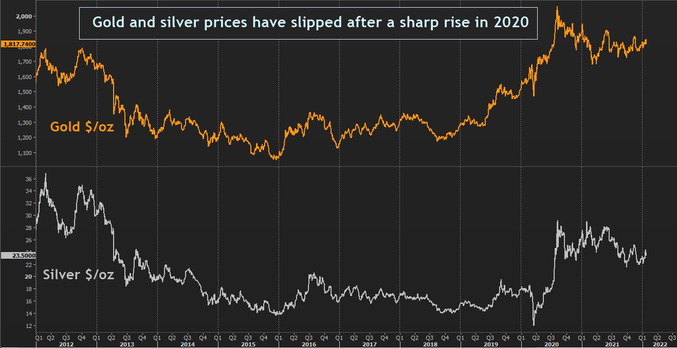 Giá bạc trung bình năm 2021 là 25,12 USD. Hiện giá đang ở mức khoảng 23 USD.