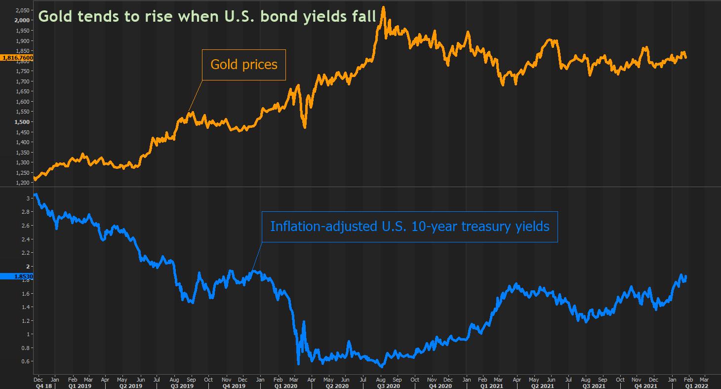 Nhà phân tích Florent Pele của Societe Generale cho biết: "Lãi suất thực của Mỹ (lợi suất của trái phiếu chính phủ được điều chỉnh theo lạm phát) sẽ chuyển biến tích cực vào cuối năm 2022 và thời điểm Goldilocks (điểm mốc vàng) của vàng sẽ trôi qua.