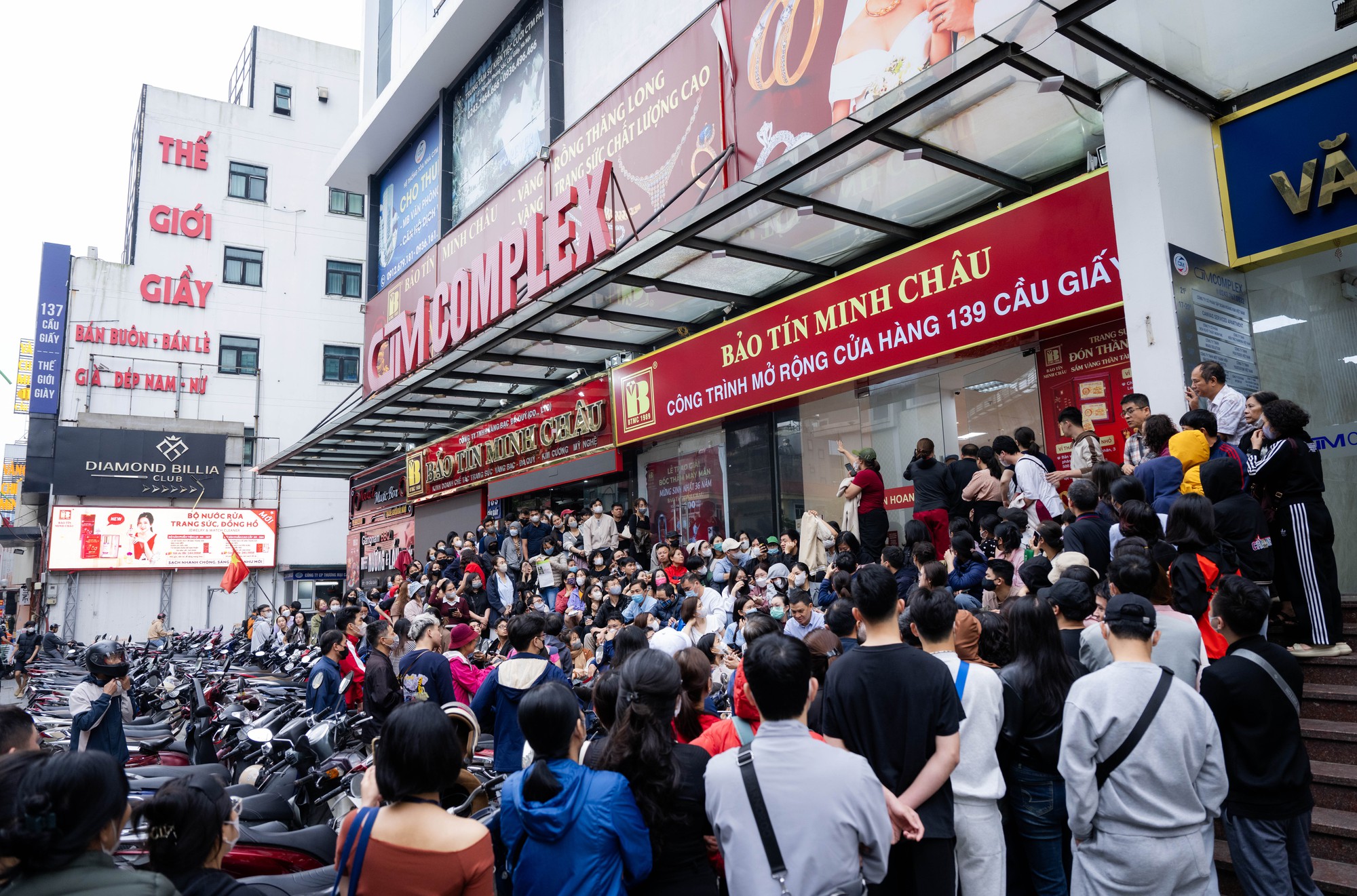 Ghi nhận tại một cửa hàng vàng trên địa bàn Cầu Giấy, từ sáng sớm, hàng trăm người đã đổ về xếp hàng chờ mua vàng dù cửa hàng chưa mở cửa