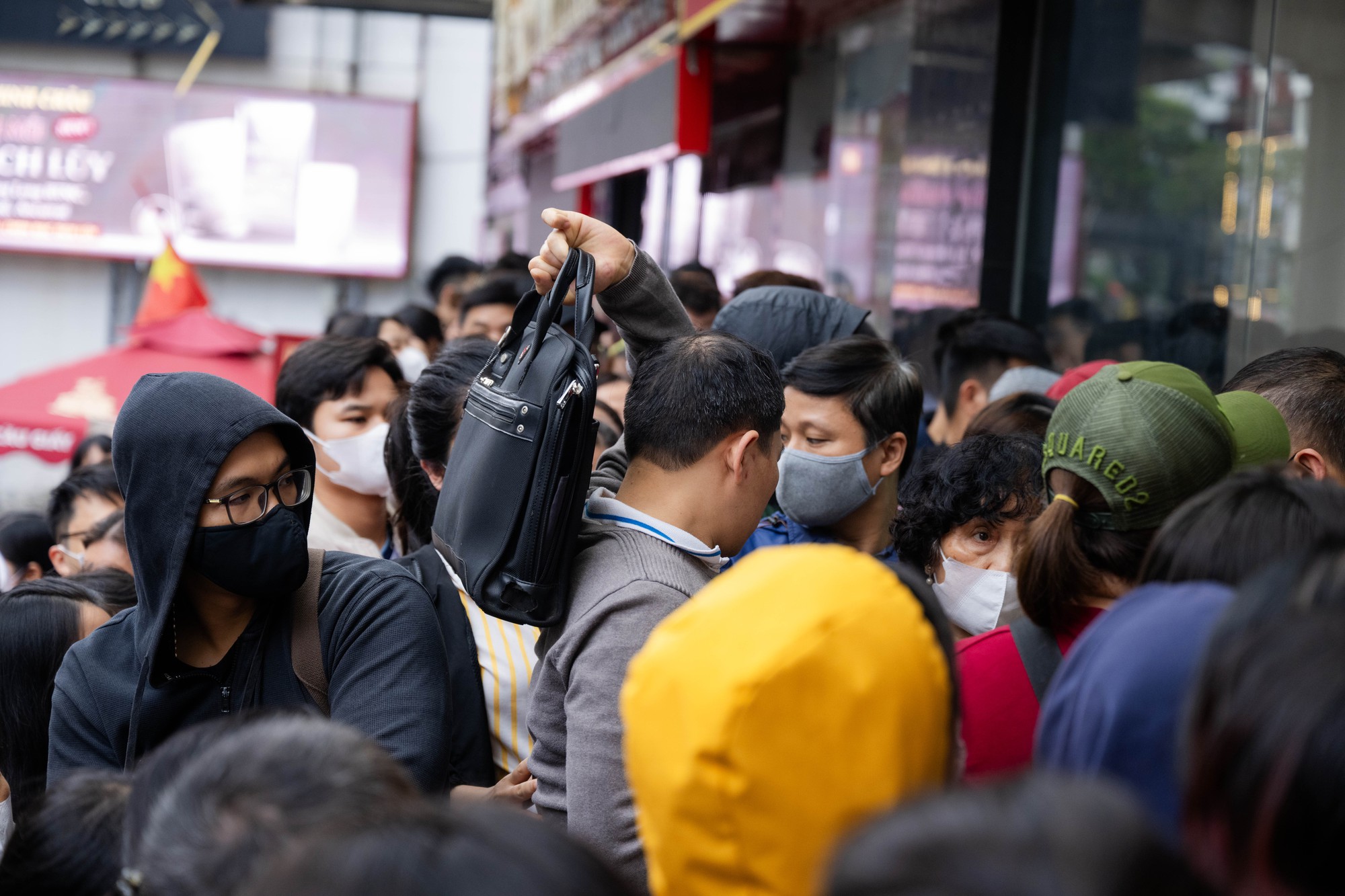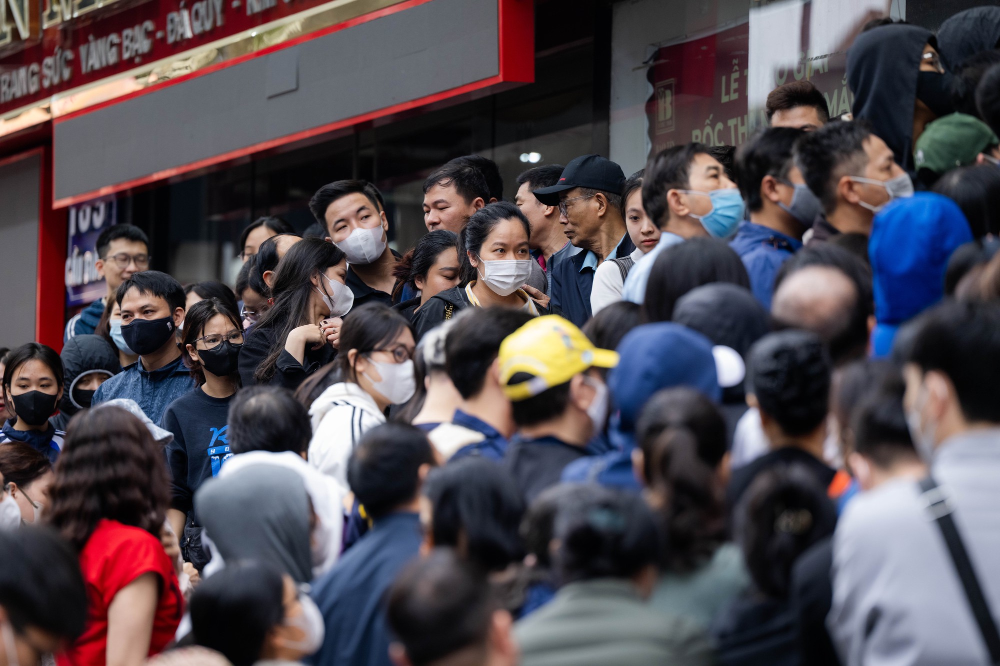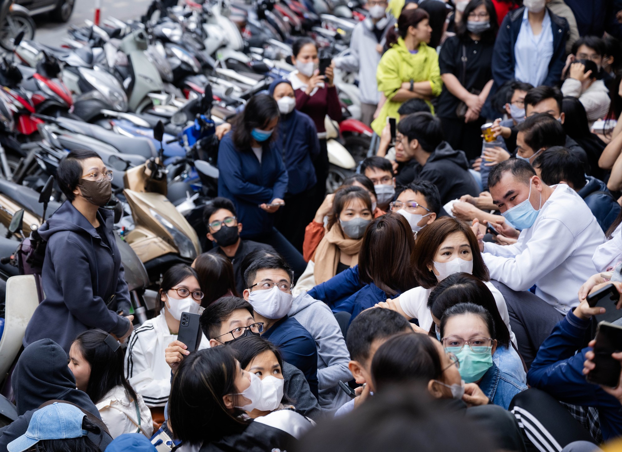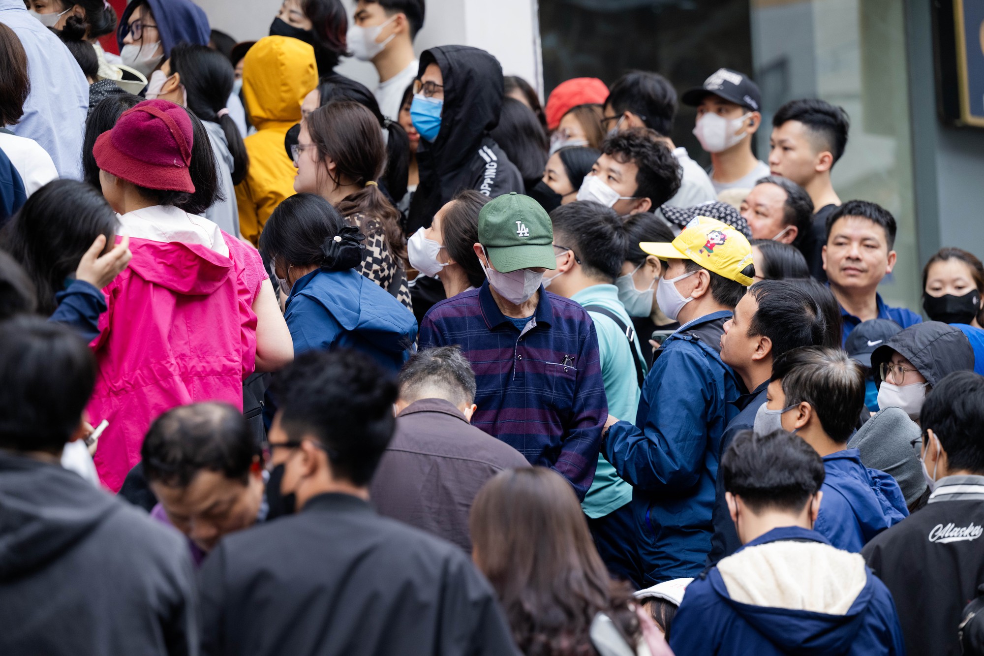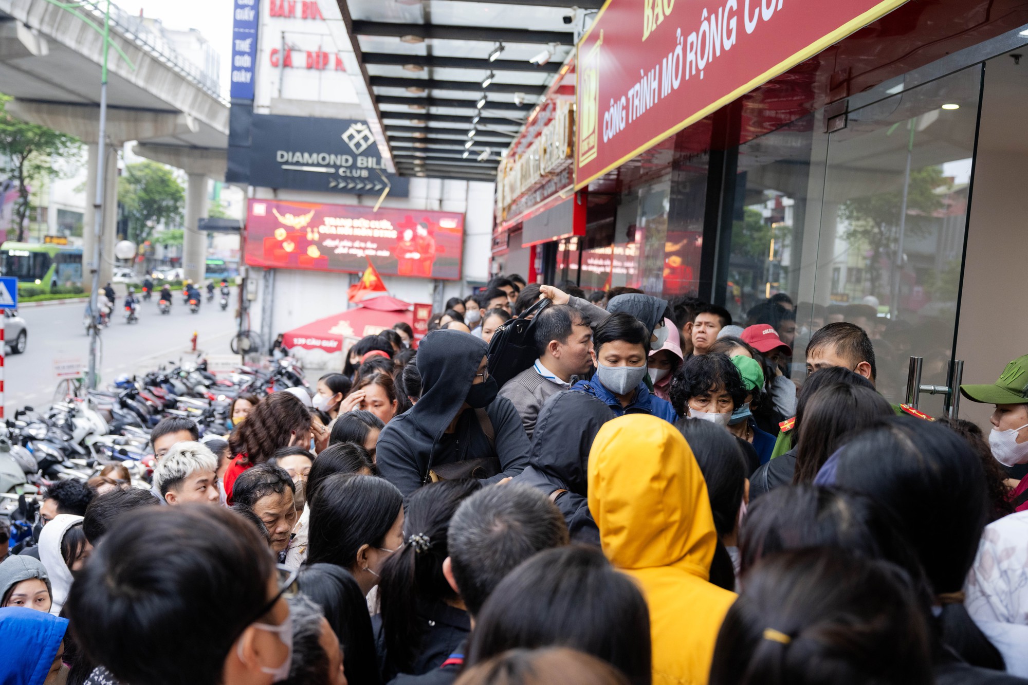 Dòng người kéo dài trước cửa tiệm, nhiều thời điểm tràn ra cả vỉa hè, tạo nên cảnh tượng đông đúc hiếm thấy.