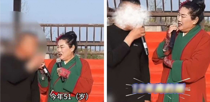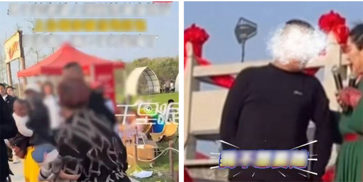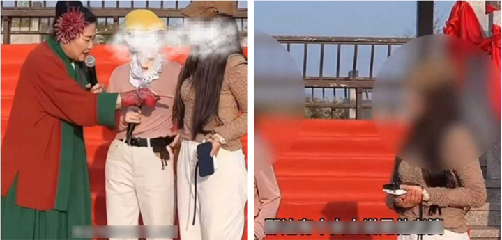 Người đàn ông đi hẹn hò giấu mặt nhưng bị vợ phát hiện, dẫn đến xung đột trên sân khấu. (Ảnh: Xinmin Evening News)