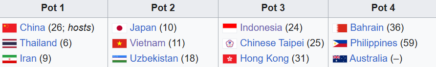 Trong khi đó, 2 đội Indonesia (nhóm 3) và Philippines (nhóm 4) sẽ phải đối mặt với nguy cơ rơi vào những bảng đấu khó khăn.