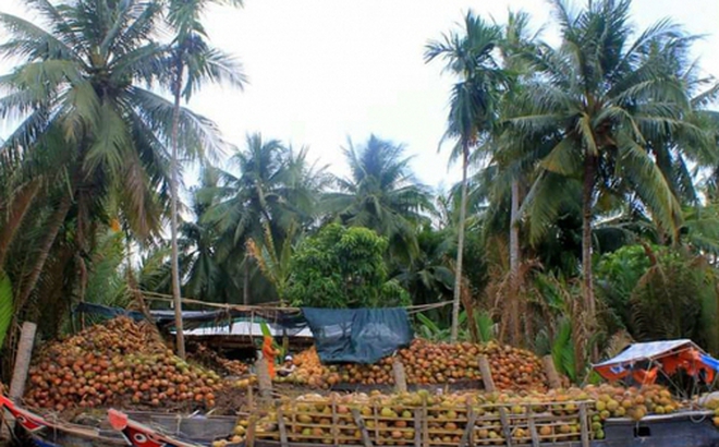 Ở thời điểm này, dừa khô ở tỉnh Bến Tre giá giảm còn trên dưới 2.000 đồng/quả; thậm chí ở các vùng nông thôn nhà vườn không bán được.