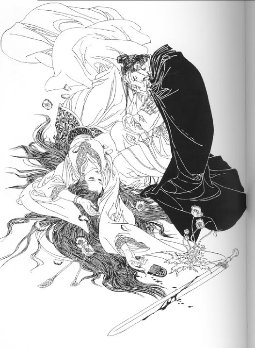 Hình minh họa nhân vật Hạng Vũ và Ngu Cơ trong tuyển tập tranh các vị Đế vương Trung Hoa của họa sĩ người Nhật Bản Natsuki Sumeragi