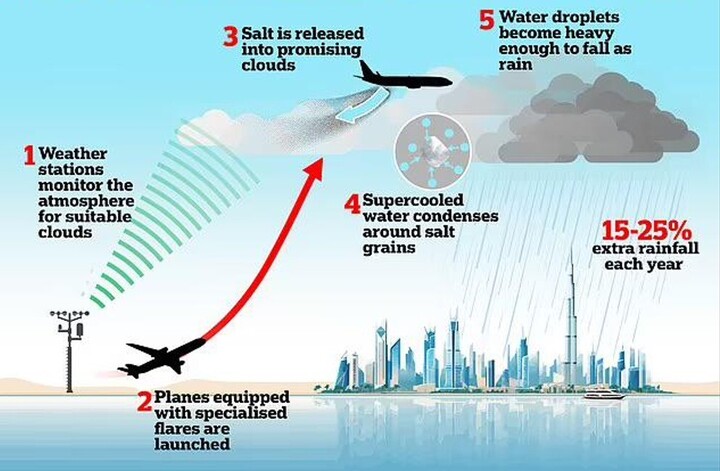 Công nghệ đuổi mây - tạo mưa nhân tạo (cloud seeding) - được nhiều quốc gia coi là giải pháp chiến lược. (Nguồn: BBC)