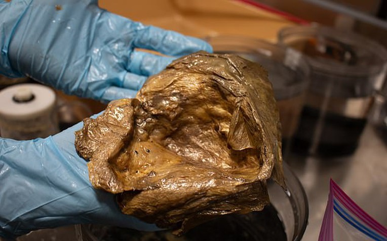Sau khi được đưa lên tàu nghiên cứu Okeanos Explorer, các phân tích ban đầu chỉ xác định đây là vật thể có nguồn gốc sinh học.