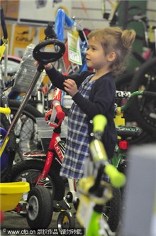 Cô đã chọn được một chiếc xe đạp vô cùng đáng yêu và chiếc mũ bảo hiểm màu hồng cho con. Trong khi đó, cô công chúa Honor tha hồ chơi đùa với các dụng cụ được bày biện đẹp mắt trong cửa hàng.Hãy cùng chiêm ngưỡng những hình ảnh của cô công chúa nhà "Thiên thần bóng tối" này nhé: