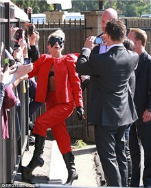 Trước đó một ngày,Lady Gagacũng khiến dân tình ngoài phố trở nên nhộn nhịp hơn khi diện một bộ đồ đỏ chót, đeo "quả kính" mới và thong dong với đôi giày không gót quen thuộc.