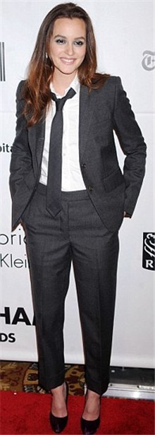 Và giờ đây, xu hướng "chuyển giới" của những mĩ nữ hàng đầu đã dần quay lại với một phong cách quyến rũ và lịch lãm, rất cá tính. Ngoài những dáng áo vest lửng, quần suông ngố đi kèm những đôi giày cao gót đính hạt lộng lẫy... thì họ còn sử dụng thêm những kiểu nơ đính, cavat thanh mảnh và cả trang sức cổ điển. Có thể thấy sự kết hợp tinh tế nhằm đem đến nét mới mẻ nhưng không mất đi sức hút rất riêng của phái nữ.