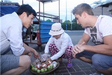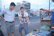 Đặt chân đến Vũng Tàu, Ryan Terry được Tiến Đoàn dẫn đi thăm quan và mua đồ lưu