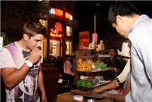 Nhưng anh lại rất thích thú với các đồ ăn vặt ở các gánh hàng rong