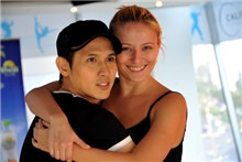 Nguyên Vũ hôn Trang Nhung trên sàn tập