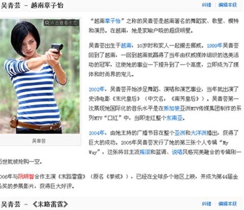 Ngô Thanh Vân xuất hiện trên trang Sina và Hudong