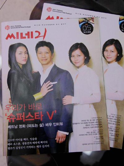 Bộ ba Tăng Thanh Hà - Hải Yến - Dustin Nguyễn trên bìa tạp chí Cinema 21 của Hàn Quốc số báo ra ngày 11/10/2010