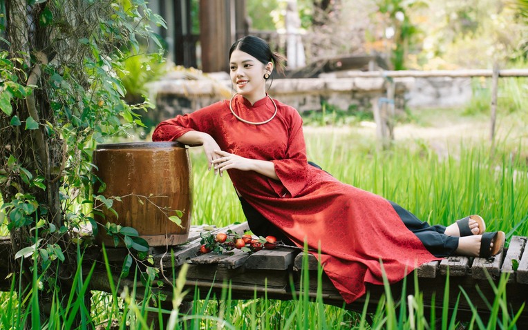 Giang Thùy Linh thướt tha áo dài.