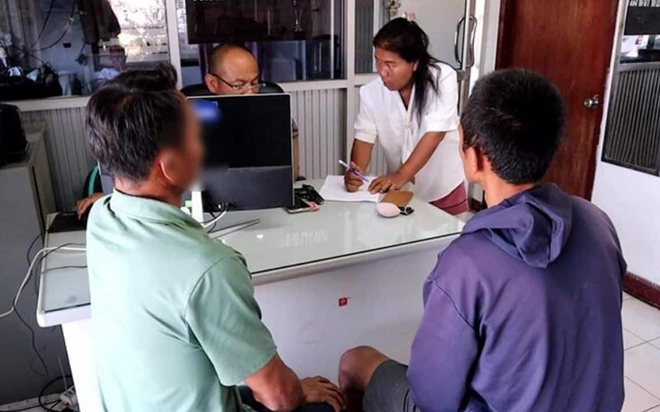 Chủ tiệm mì đang kể lại câu chuyện bị tên cướp giật mất số tiền 700 baht.