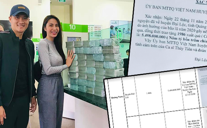 Những ngày qua, các địa phương từng được Thuỷ Tiên thay mặt các mạnh thường quân về cứu trợ hồi tháng 10/2020 đã lần lượt lên tiếng xác minh về khoản tiền từ thiện của nữ ca sĩ. Vào hôm 8/10, chính quyền địa phương tại Quảng Nam cũng đưa ra thống kê cụ thể các hoạt động thiện nguyện của vợ chồng Thuỷ Tiên tại địa bàn.