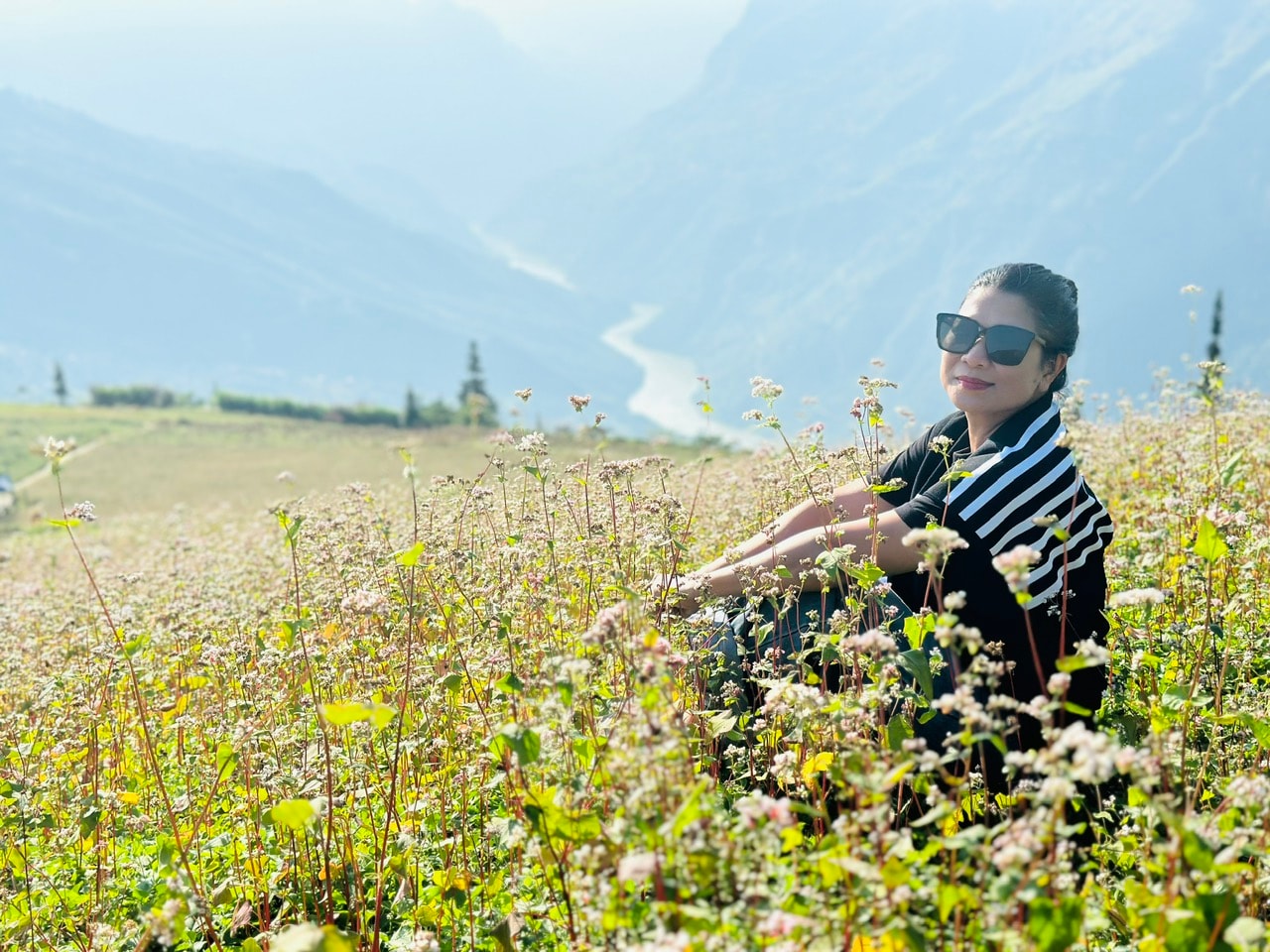Du khách trải nghiệm Hà Giang vào mùa tam giác mạch. Ảnh: Hoàng Lân