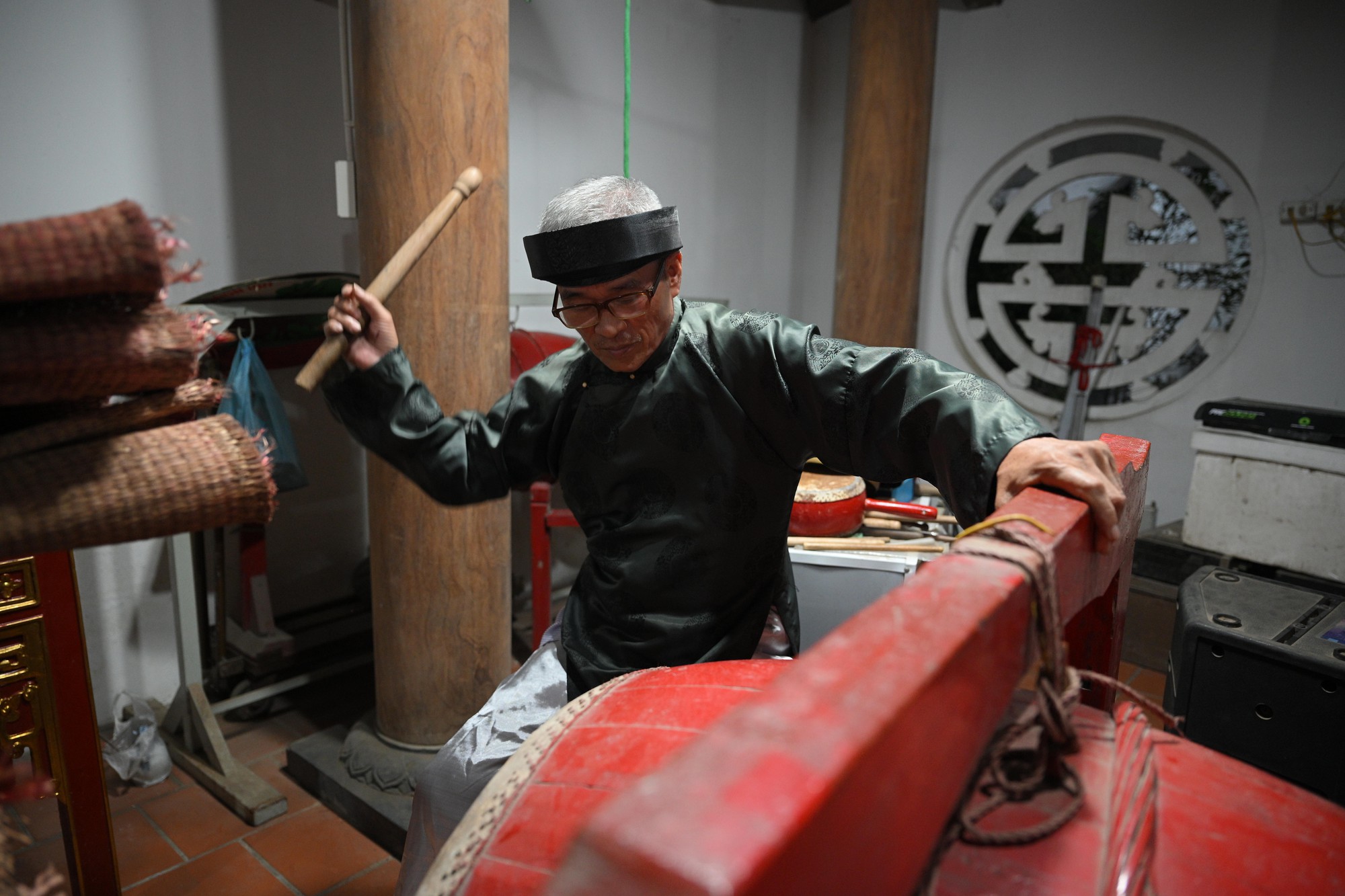 Đúng 21h, các cụ cao niên tiến hành làm lễ, sau đó cụ chủ tế của buổi lễ và cũng là người duy nhất được vào trong hậu cung để lấy lửa ra chuẩn bị tán lộc cho dân làng