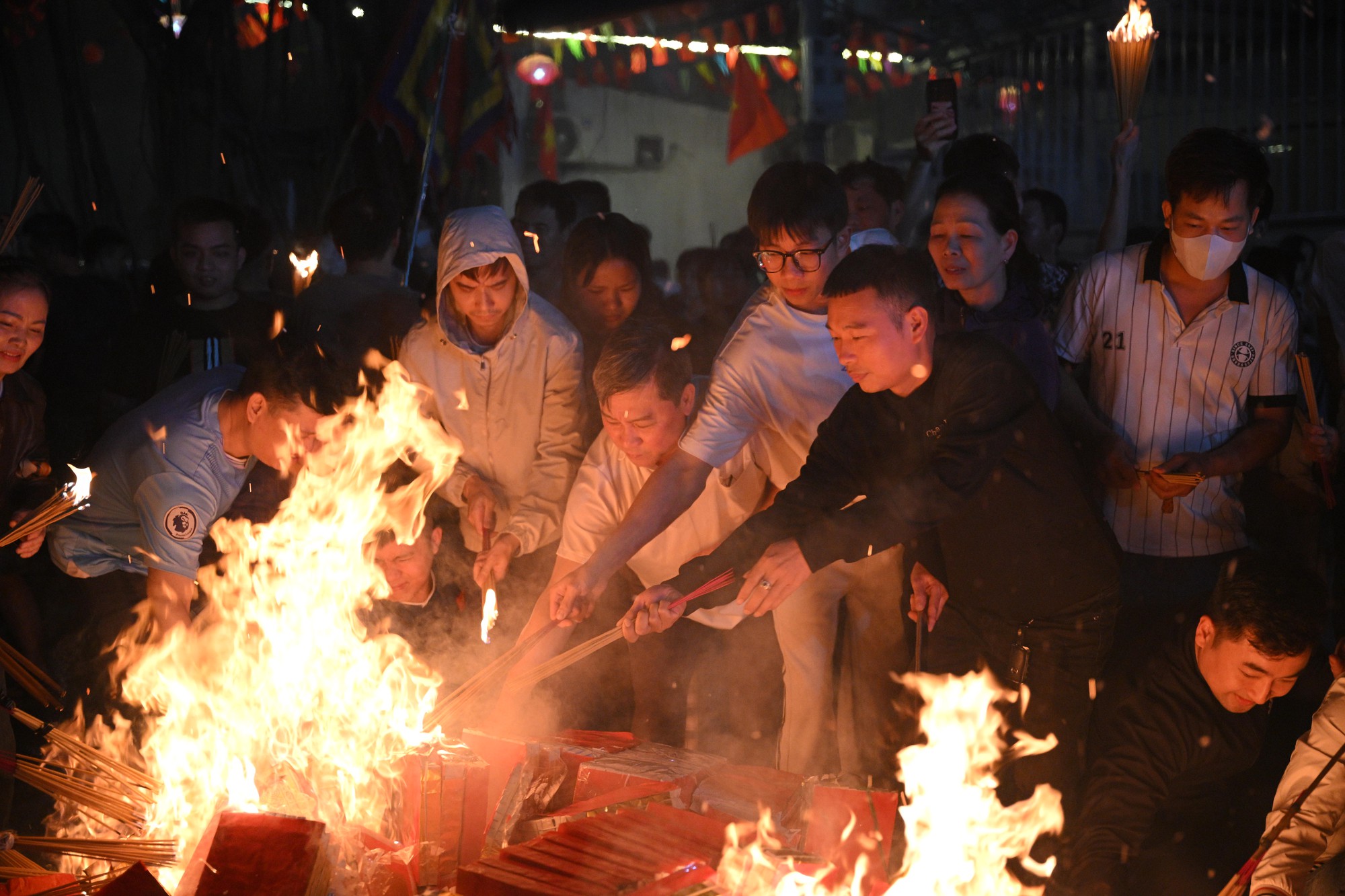 Đúng 21h ngày 11 tháng Giêng, hàng trăm người dân làng An Định ở Hà Nội lại đổ ra sân đình xin lửa đầu năm với niềm tin mang “đỏ” về nhà sẽ gặp may mắn suốt cả năm.