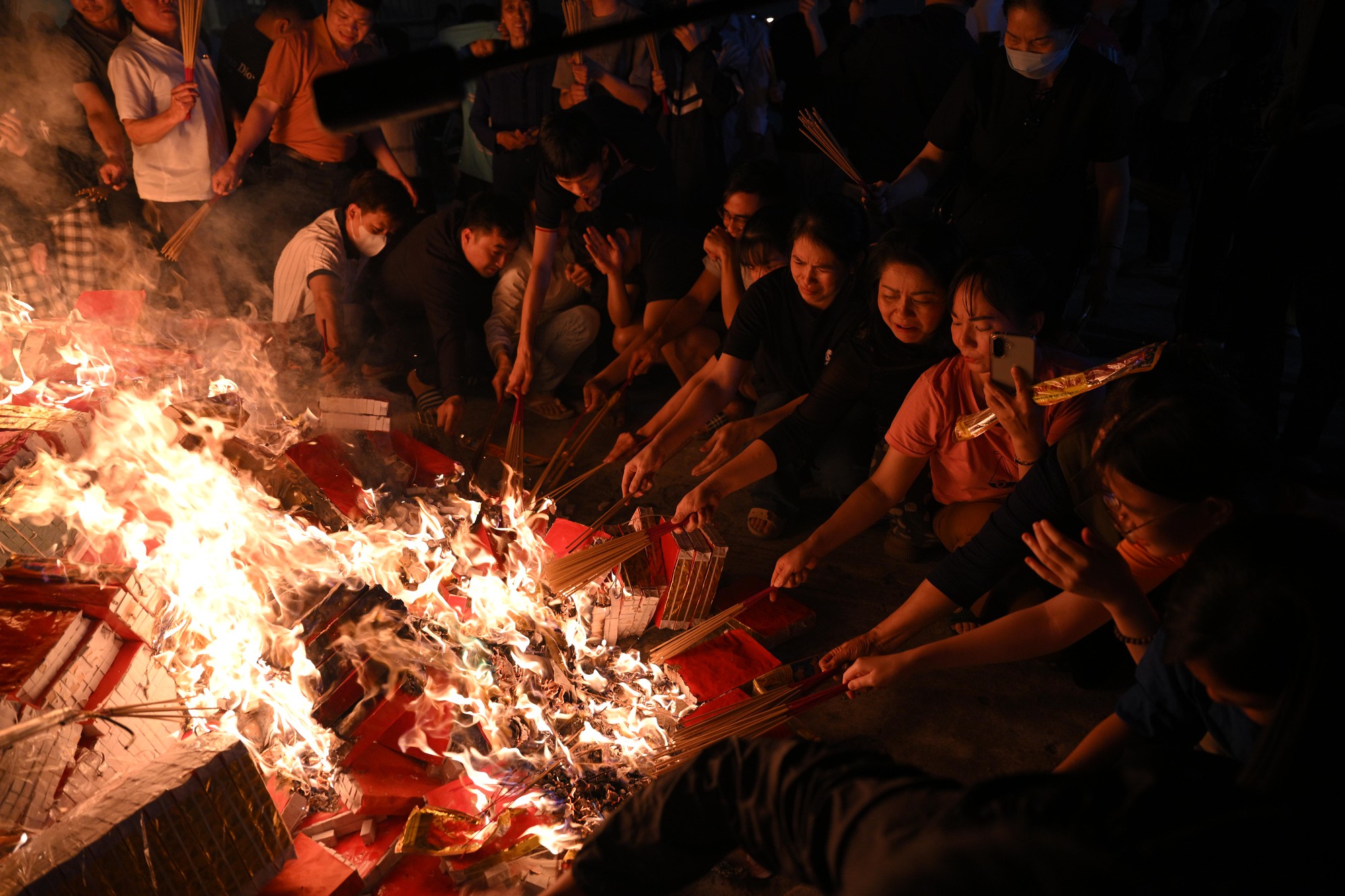 Khi ngọn lửa bùng lên, người dân đổ xô vào, dùng hương châm vào ngọn lửa để lấy đỏ, tuy nhiên, không có tình trạng chen lấn xô đẩy mà mọi người hỗ trợ nhường nhịn lẫn nhau