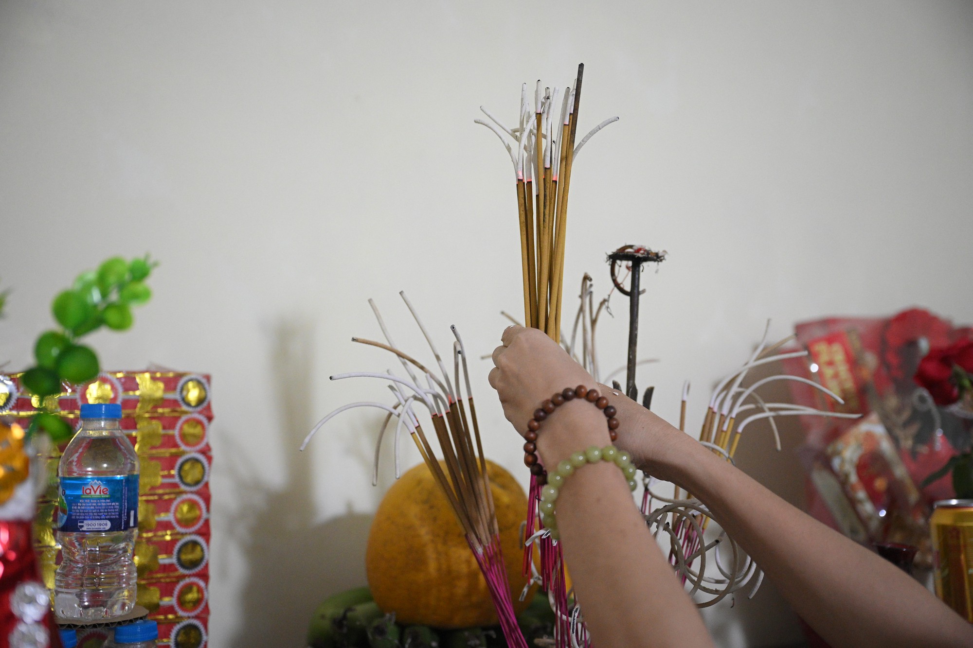Khi xin được lửa xong, người dân nhanh chóng đem hương về nhà để kịp cắm lên ban thờ.