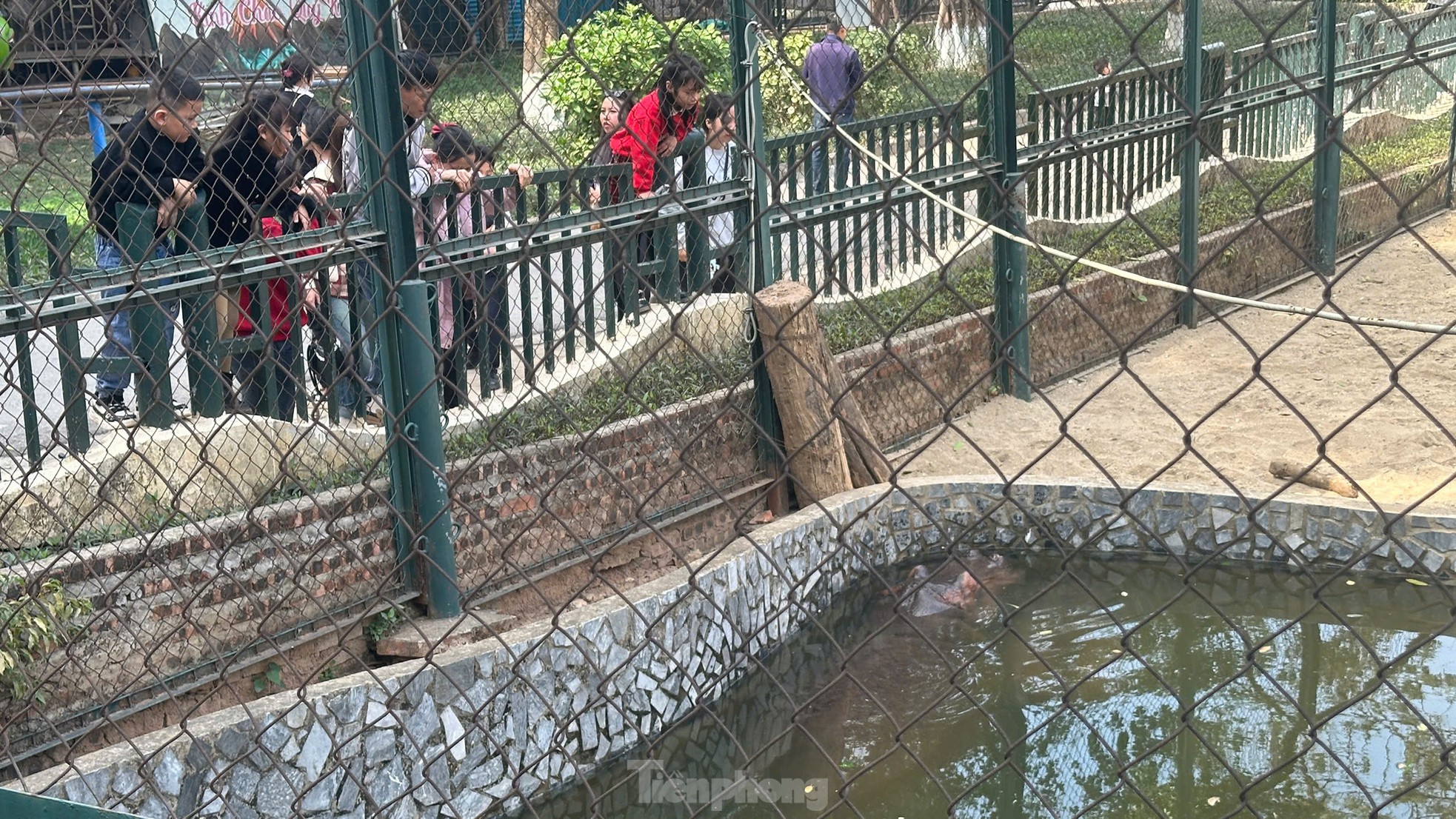 Tại công viên Thủ lệ (Vườn thú Hà Nội) ngày mùng 3 Tết, các gia đình đến không đông như các năm trước. Điểm nhấn của công viên tập trung tại chuồng hà mã - nơi vừa chào đón bé hà mã sinh sản theo phương pháp tự nhiên đầu tiên tại miền Bắc.