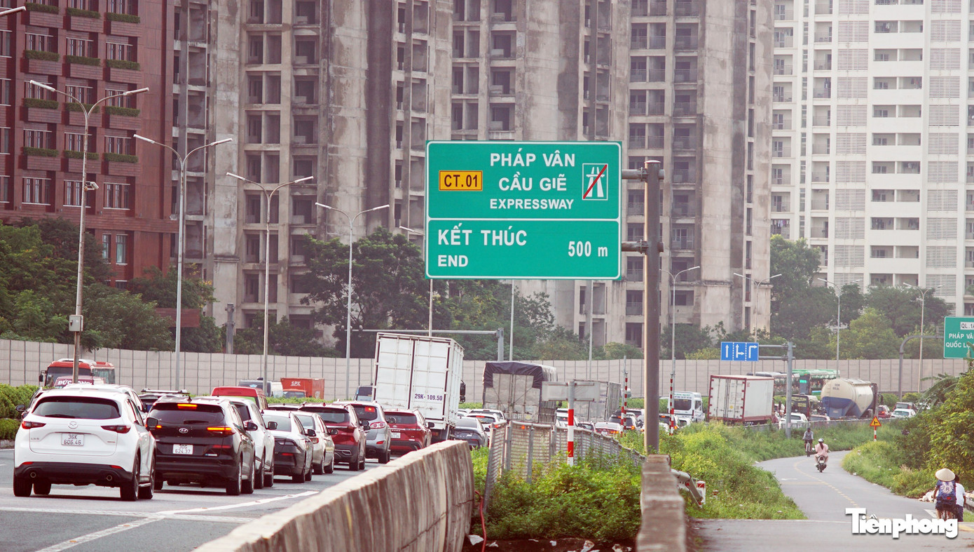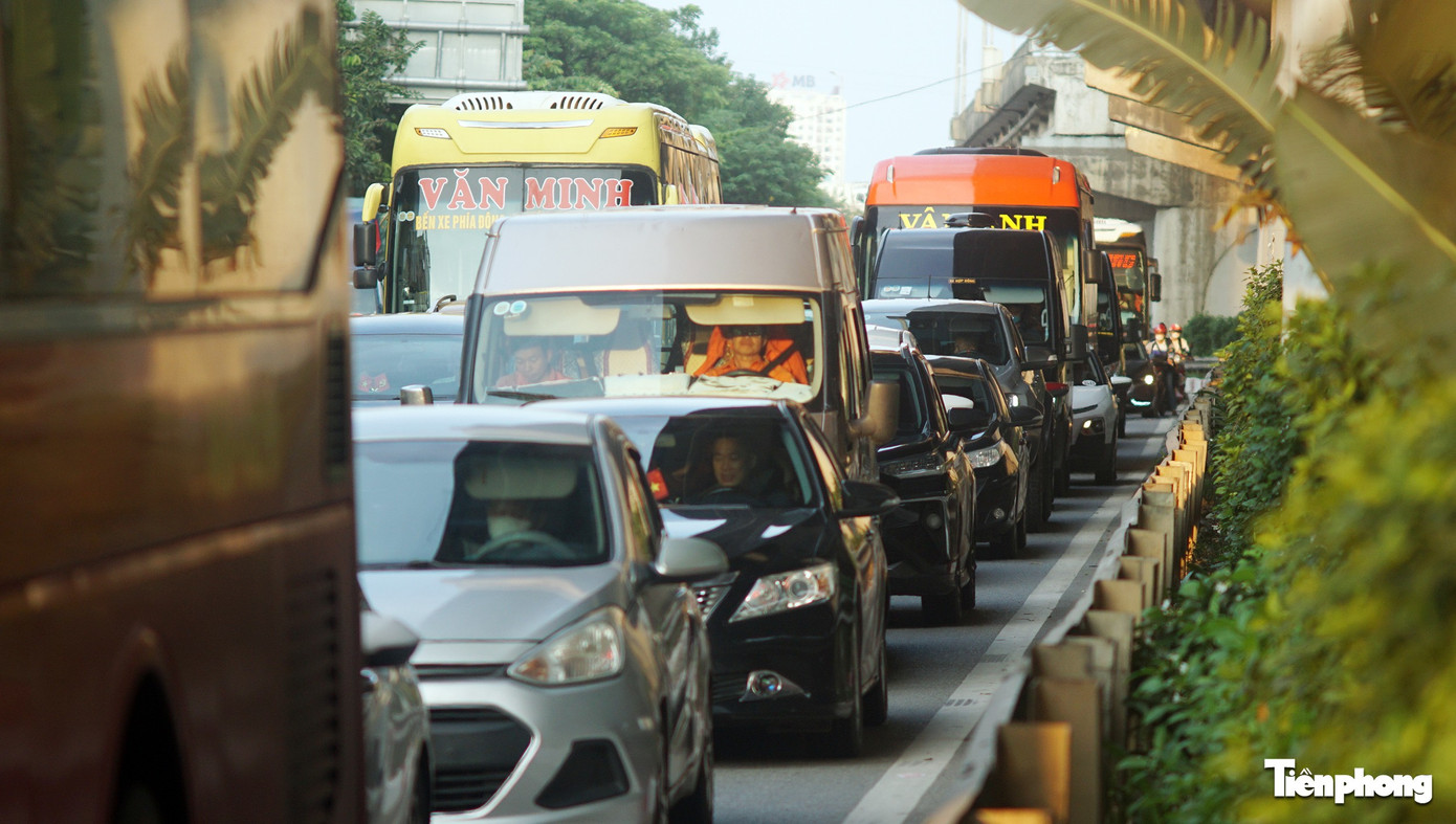 Tại nút giao với đường Vành đai 3 trên cao xảy ra ùn nhẹ lúc hơn 17h.
