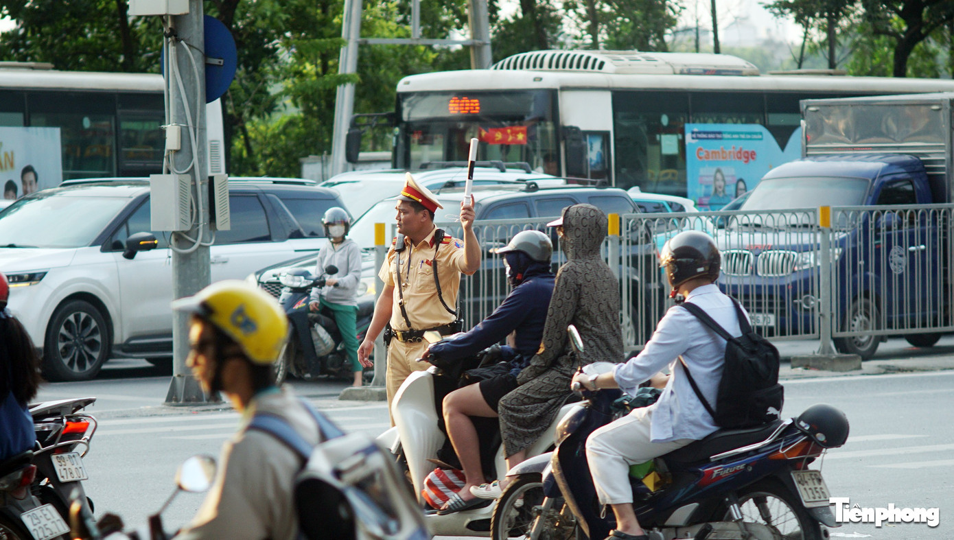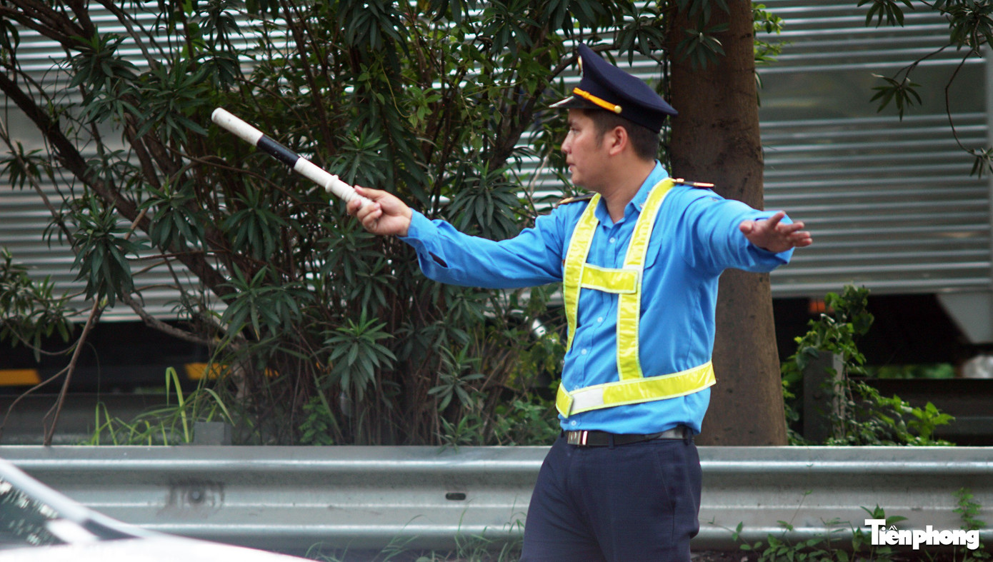 Lực lượng CSGT thuộc Đội CSGT đường bộ số 14 phân làn giao thông tại khu vực đường Giải Phóng.