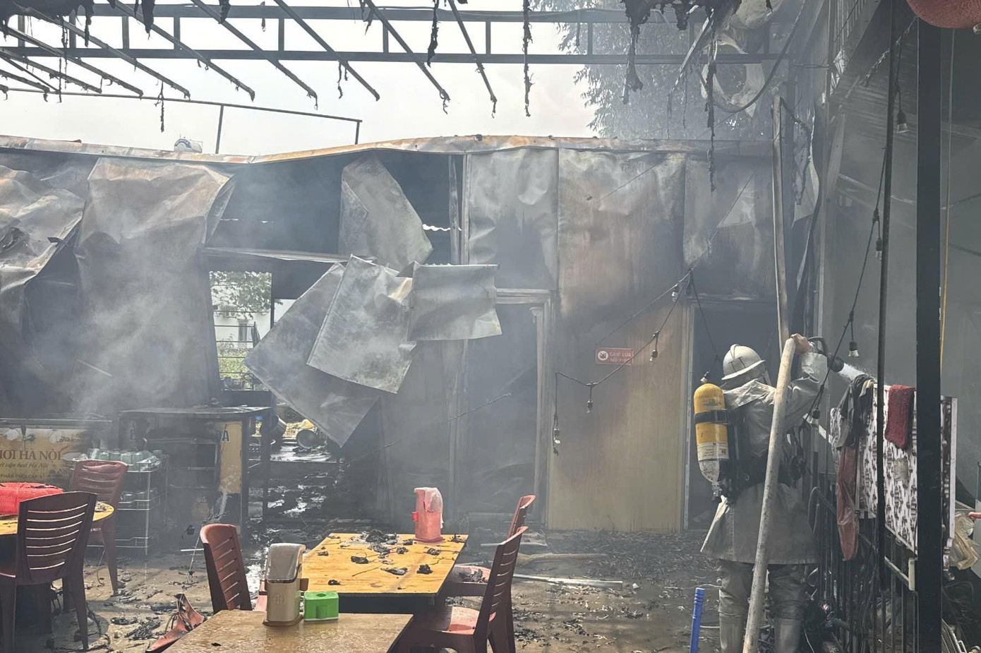 Sau thời gian chữa cháy, lửa được dập tắt hoàn toàn. Được biết, khu vực xảy ra hỏa hoạn là khu bếp quán ăn uống có diện tích vài mét vuông. Khi phát hiện có cháy người bên trong đã kịp thoát ra ngoài.