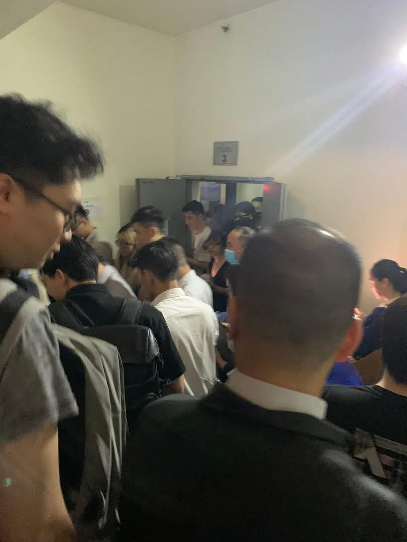 Lối cầu thang thoát hiểm chật kín người (Ảnh: Tuyết Đặng)