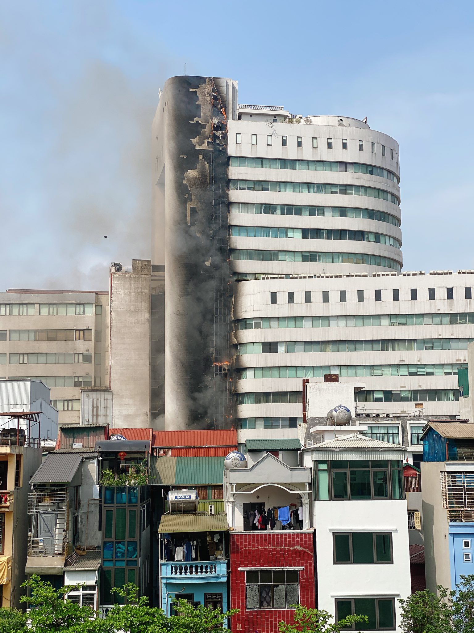Theo thông tin ban đầu từ người dân, vào khoảng thời gian trên, đám cháy xuất phát tại tòa nhà số 1 Thái Hà, sau đó lan nhanh lên các tầng. Nhiều người khác cho biết học cũng bất ngờ nghe thấy tiếng nổ lớn, sau đó là cột khói đen cuồn cuộn bốc lên từ khu vực này.